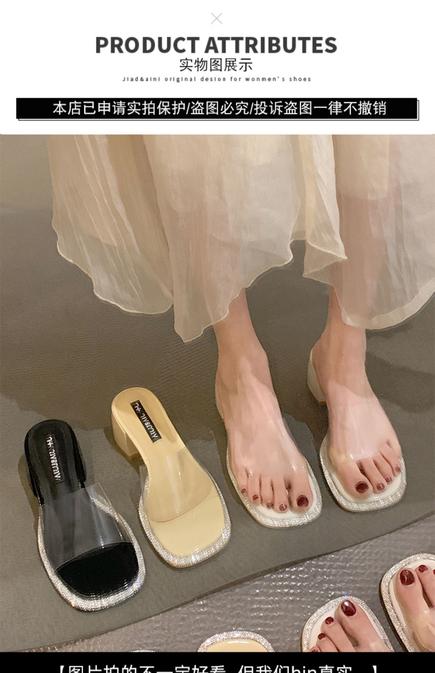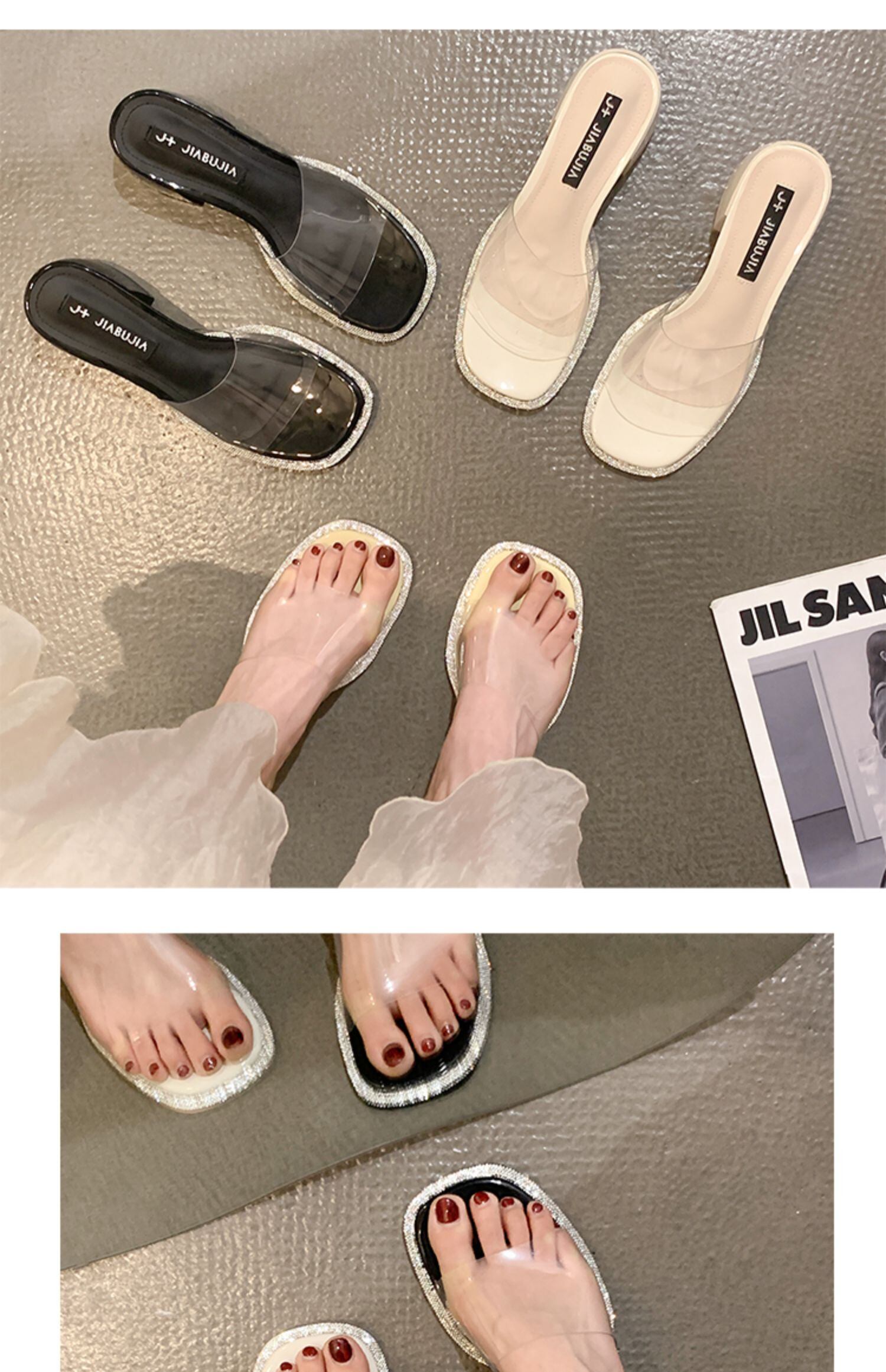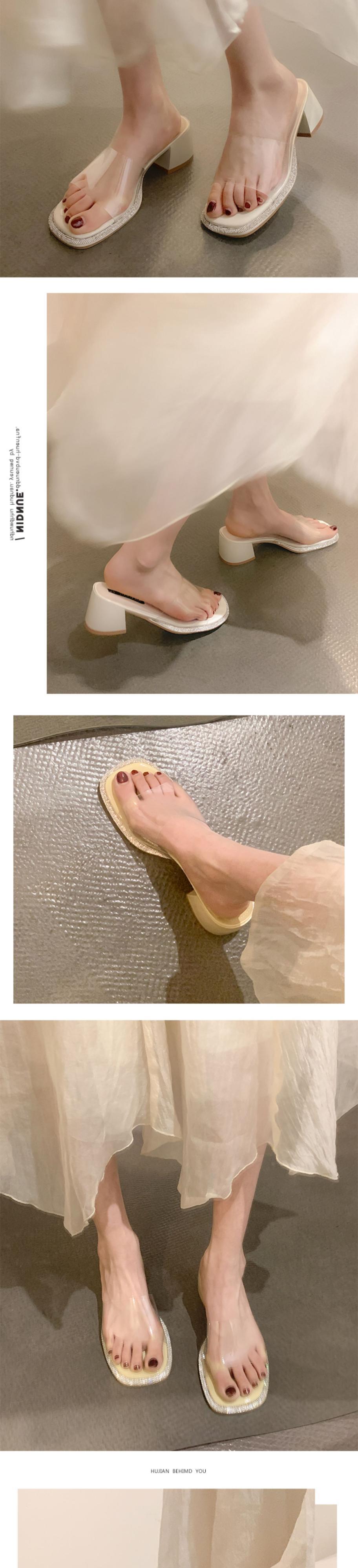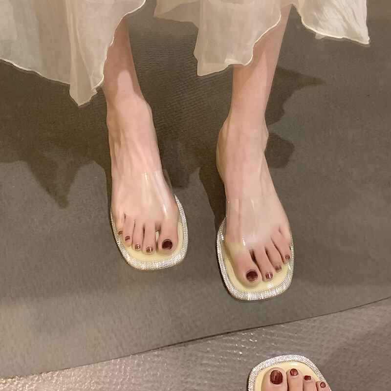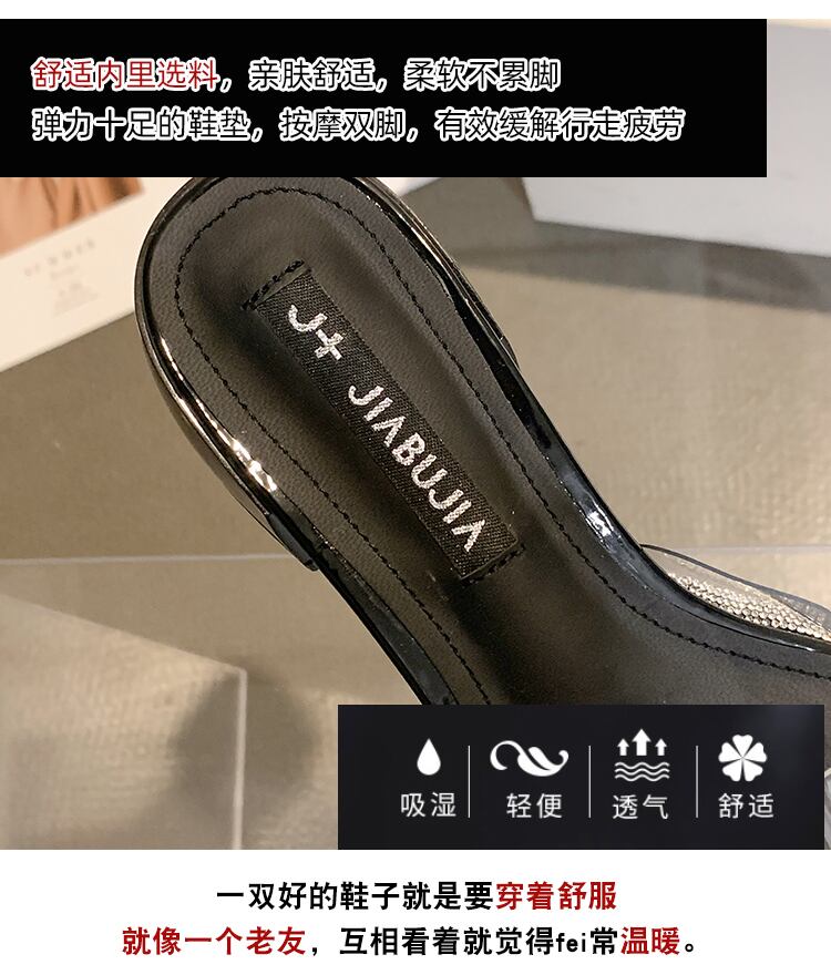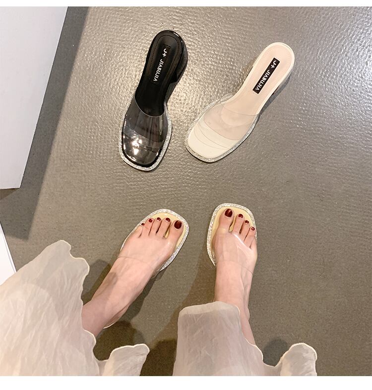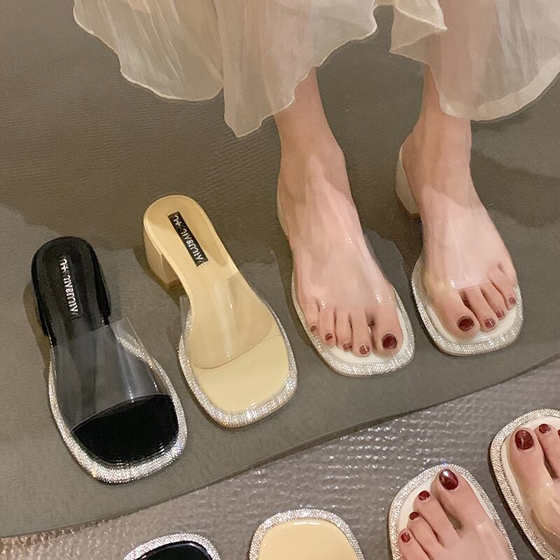 ネットレッドスリッパレディースサマーウェア2022新しいファッションオールマッチラインストーン透明一言厚ヒール滑り止めサンダルとスリッパ ミュール 靴 シューズ 夏物 jxjxf18044710151
