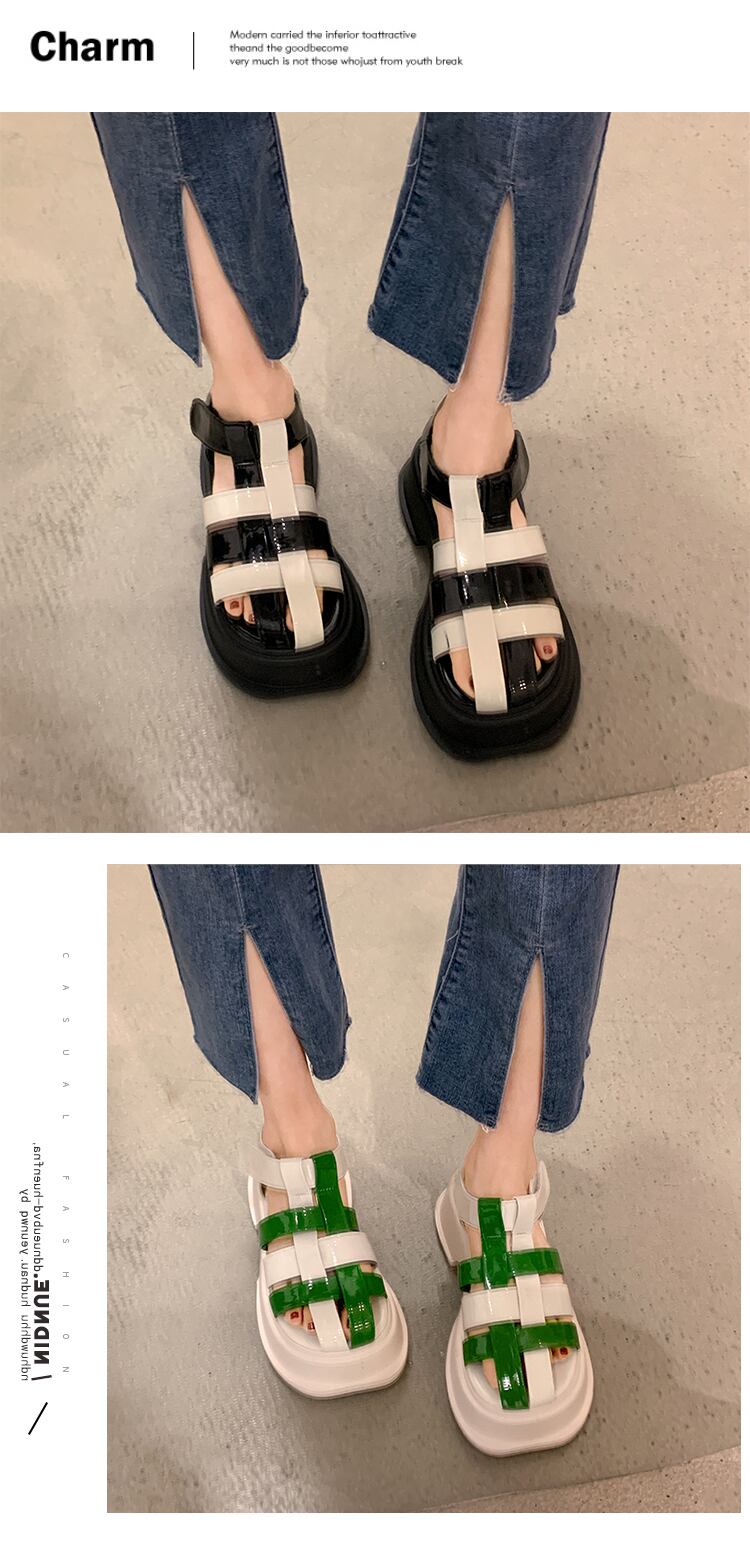 靴女性の夏のサンダル2022新しいファッションオールマッチベルクロ小さな厚いヒール滑り止めのつま先のビーチシューズ サマー 夏物 jxjxf43154114441