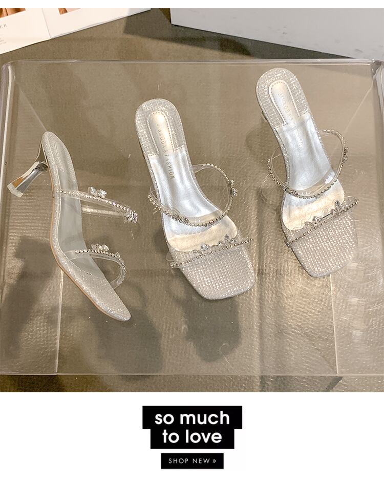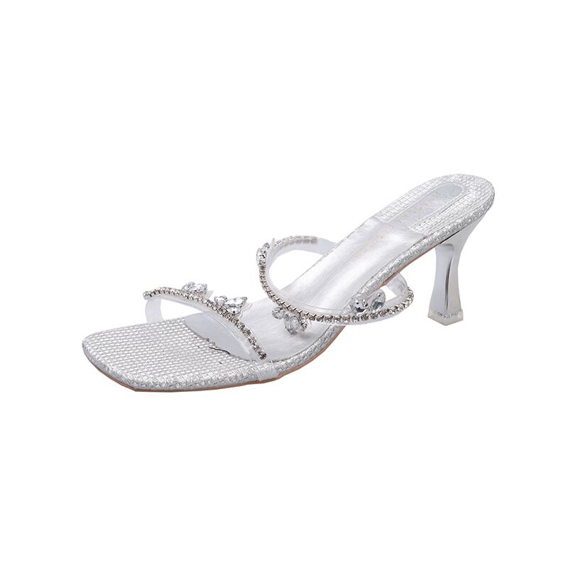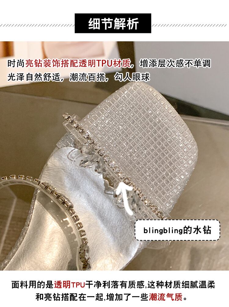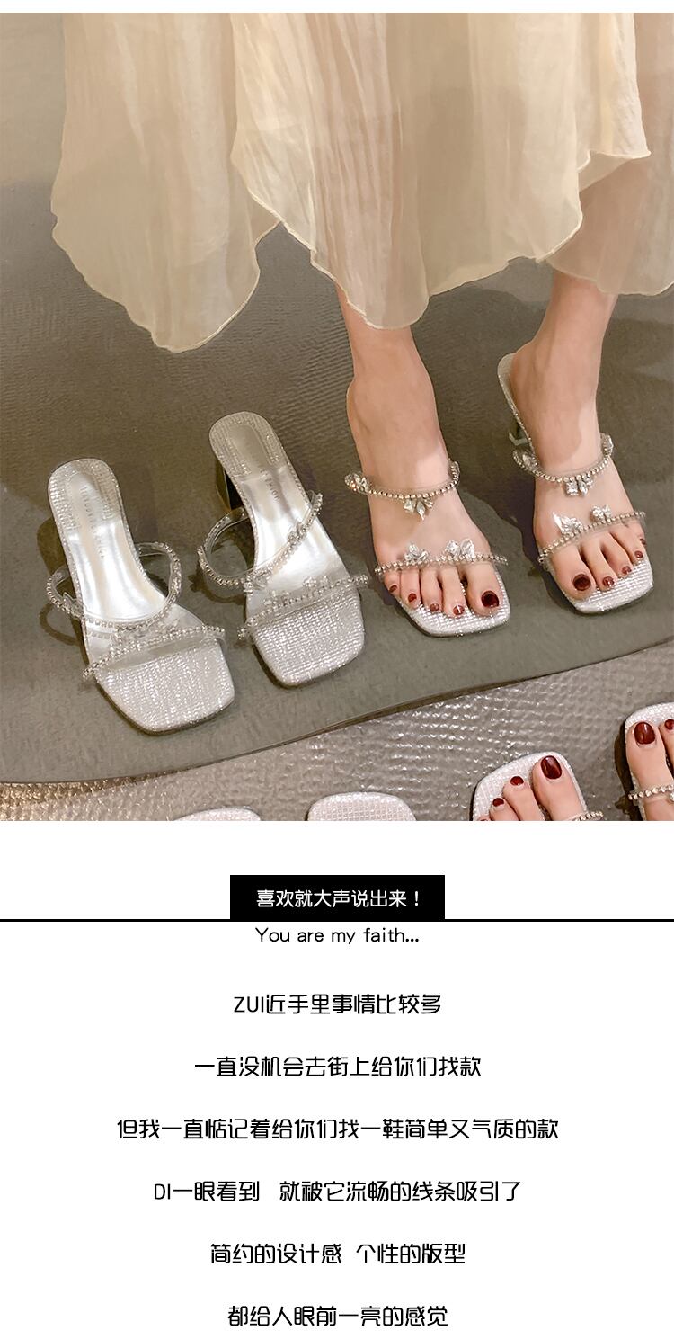女性の2022年夏の外のスリッパ新しいラインストーンのスティレットネットの赤いファッションオールマッチの妖精スタイルのハイヒールのビーチサンダル レッド 靴 シューズ ミュール サマー 夏物 jxjxf79540284504