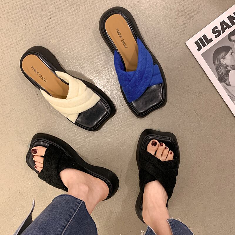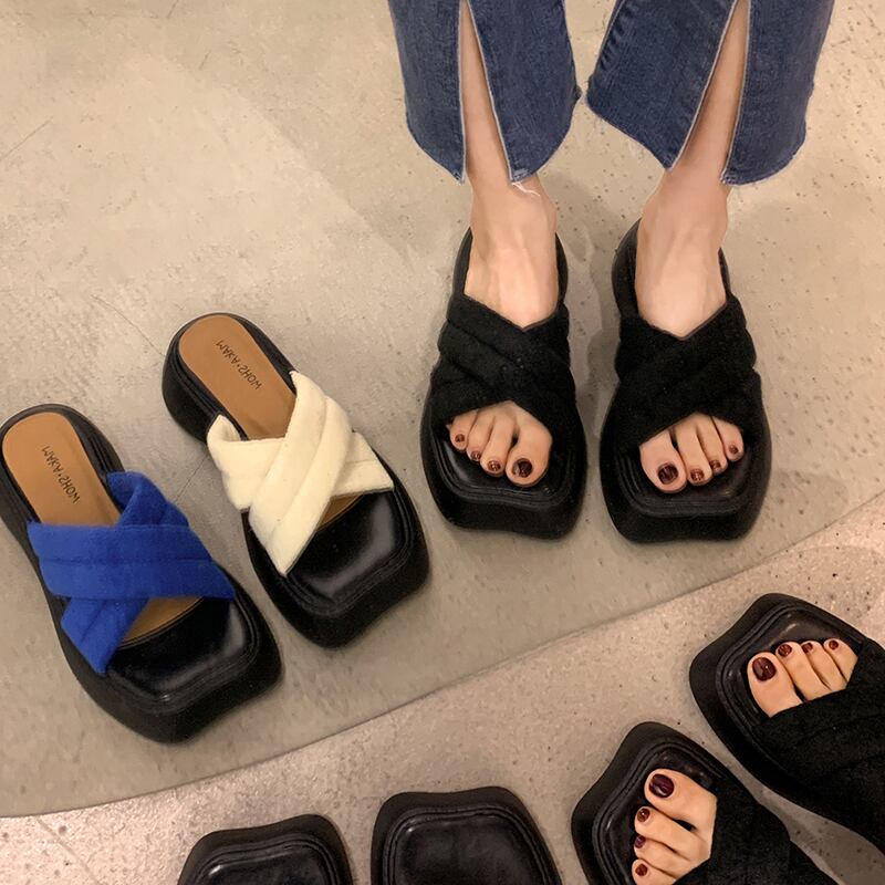 一言スリッパ女子2022年夏新作クロス厚底ネットレッドスーパーファッションオールマッチサンダルとスリッパ夏 ミュール 靴 シューズ サマー 夏物 jxjxf23856494492