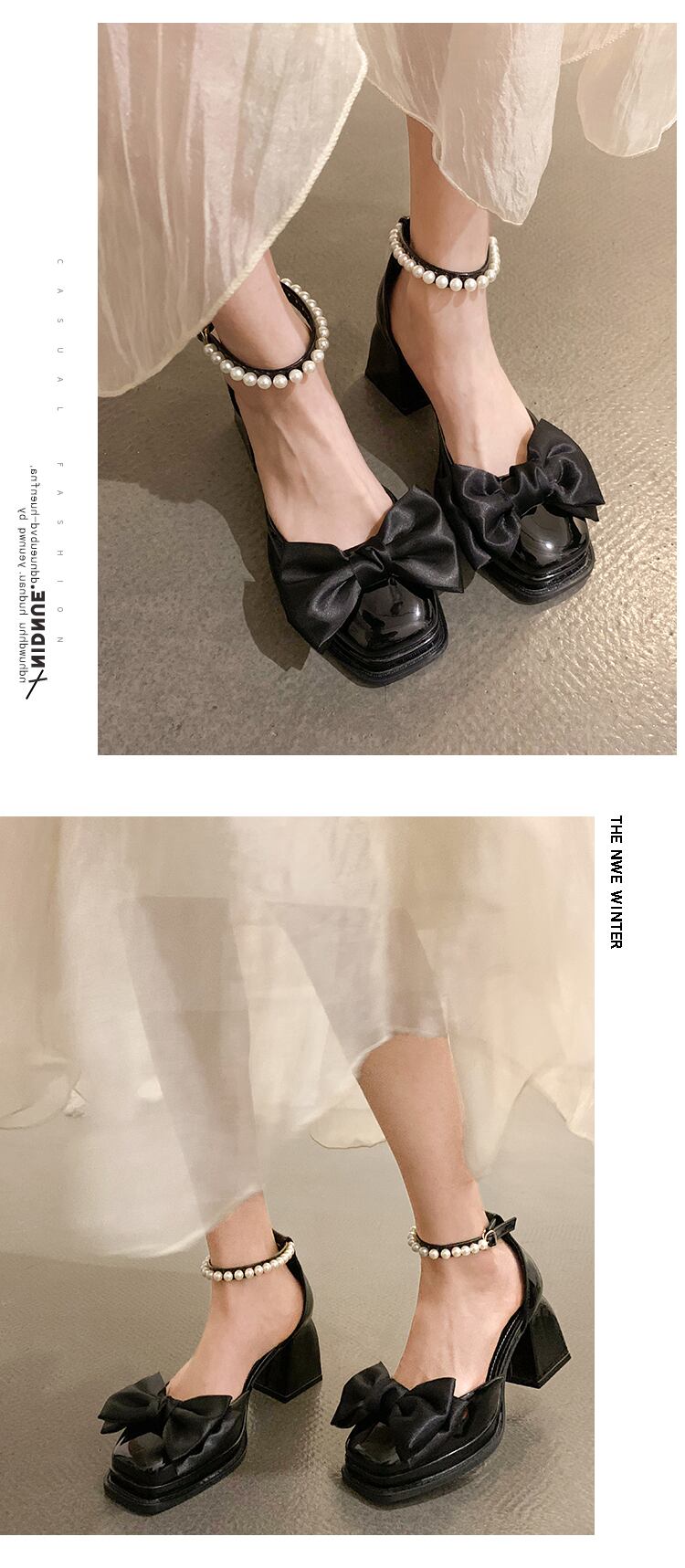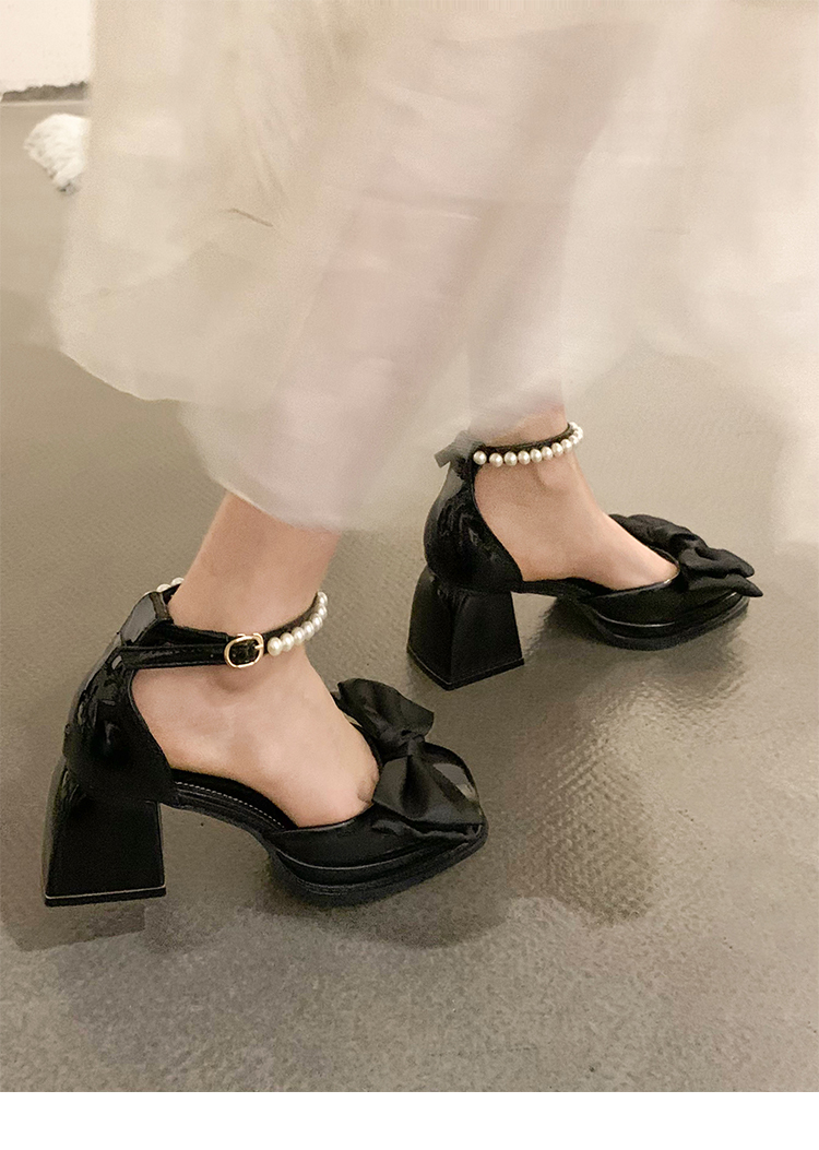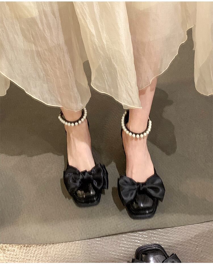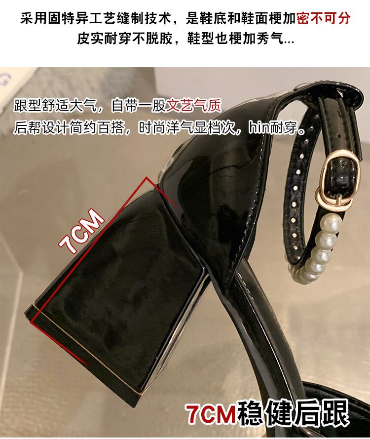 スクエアトゥシューズレディース2022年春ニューファッションオールマッチレトロパールバックル厚手のヒール滑り止めメアリージェーンシューズ 靴 スプリング 春物 真珠 スクウェア jxjxf8229260960