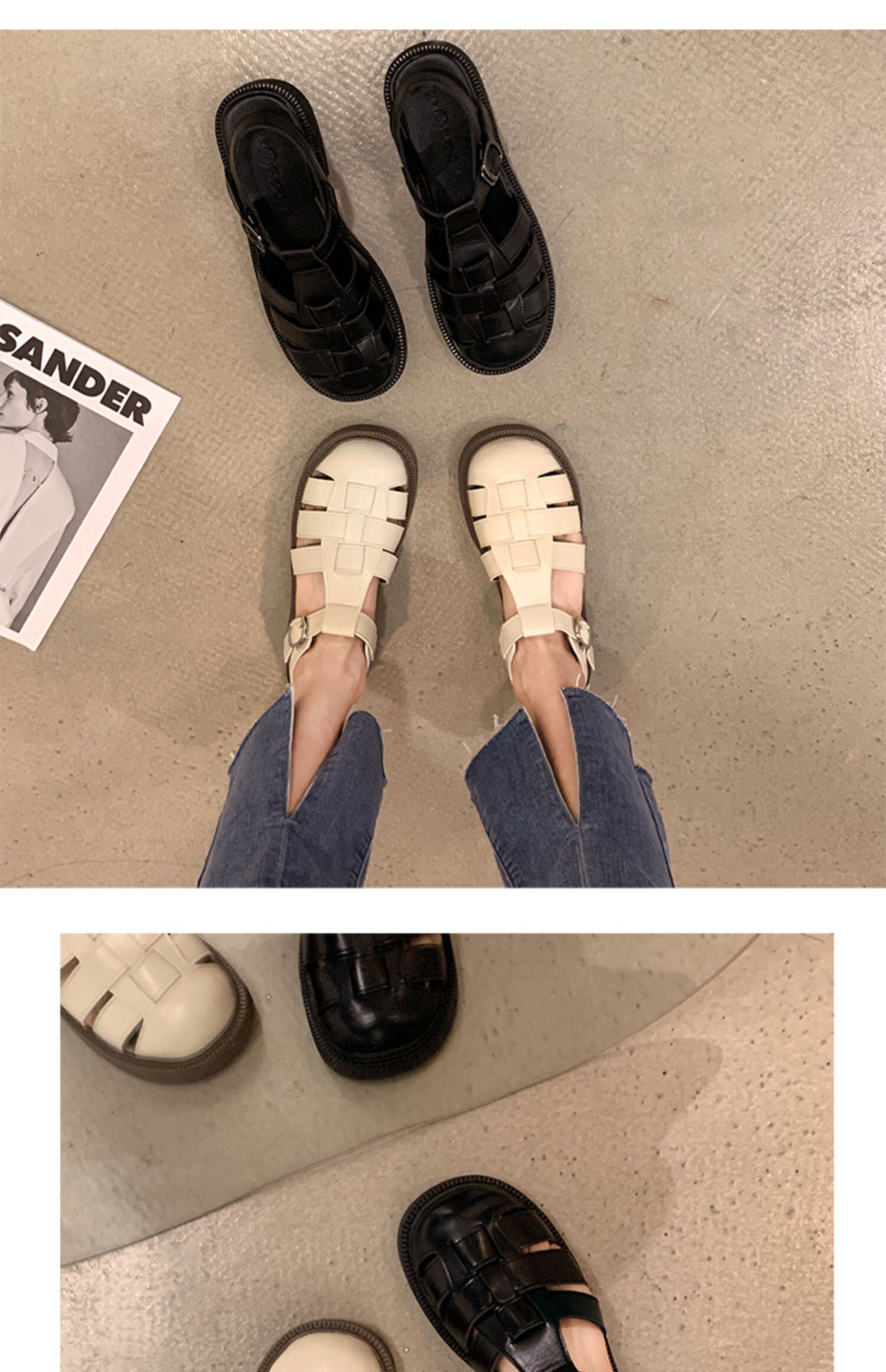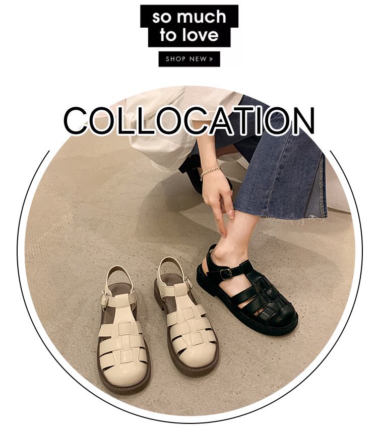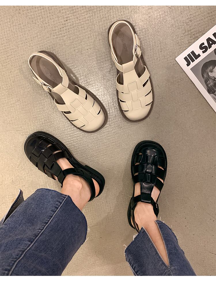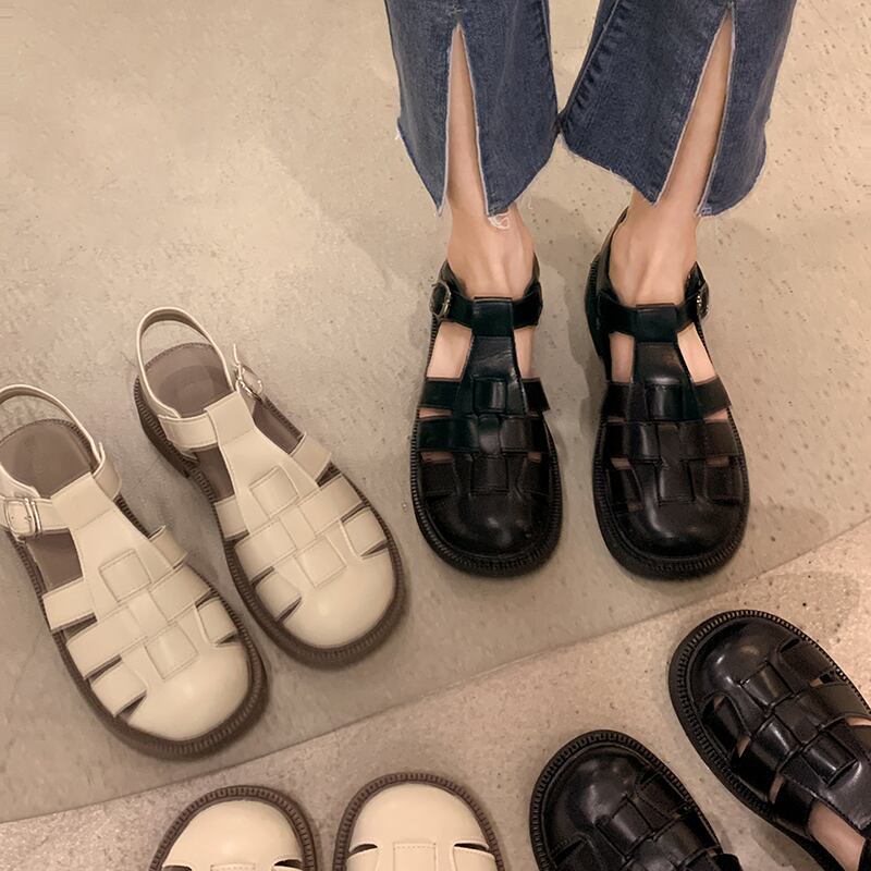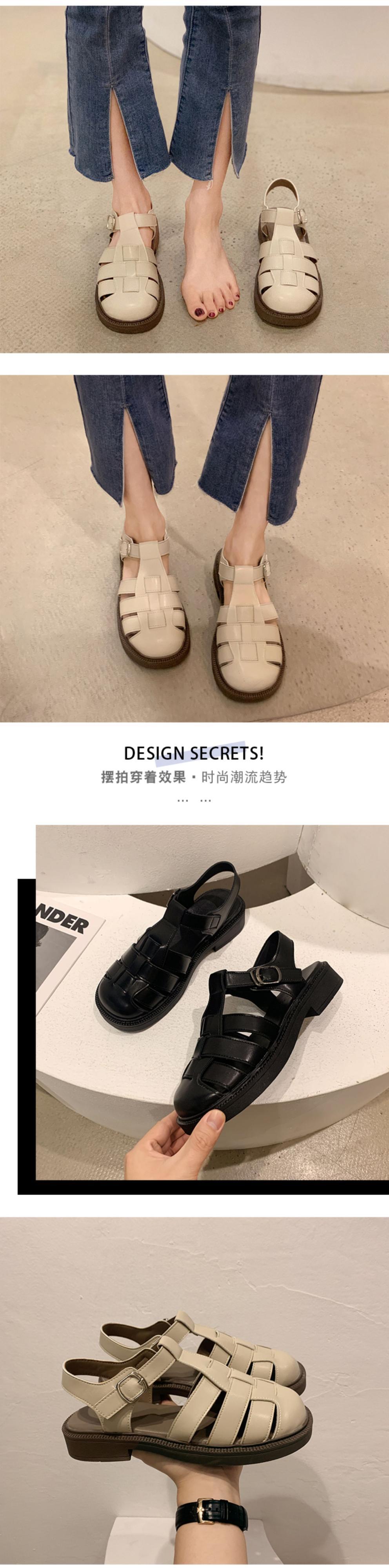 包頭サンダルレディース2022夏の新しいファッションオールマッチレトロ織りバックルフラットローマのビーチシューズトレンド 靴 サマー 夏物 jxjxf37182959982