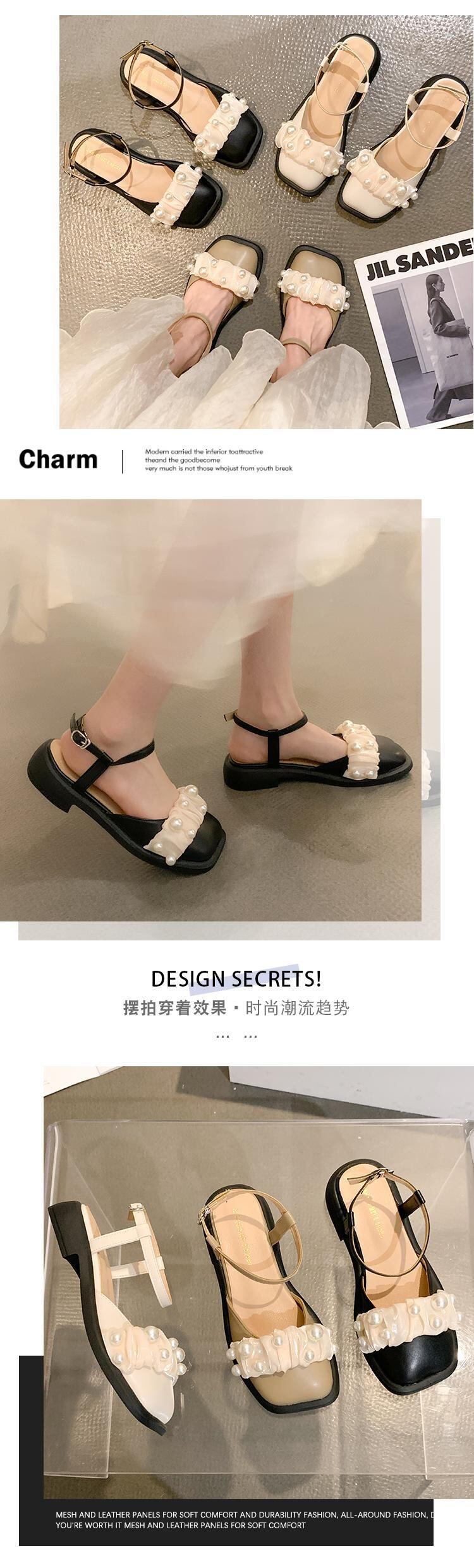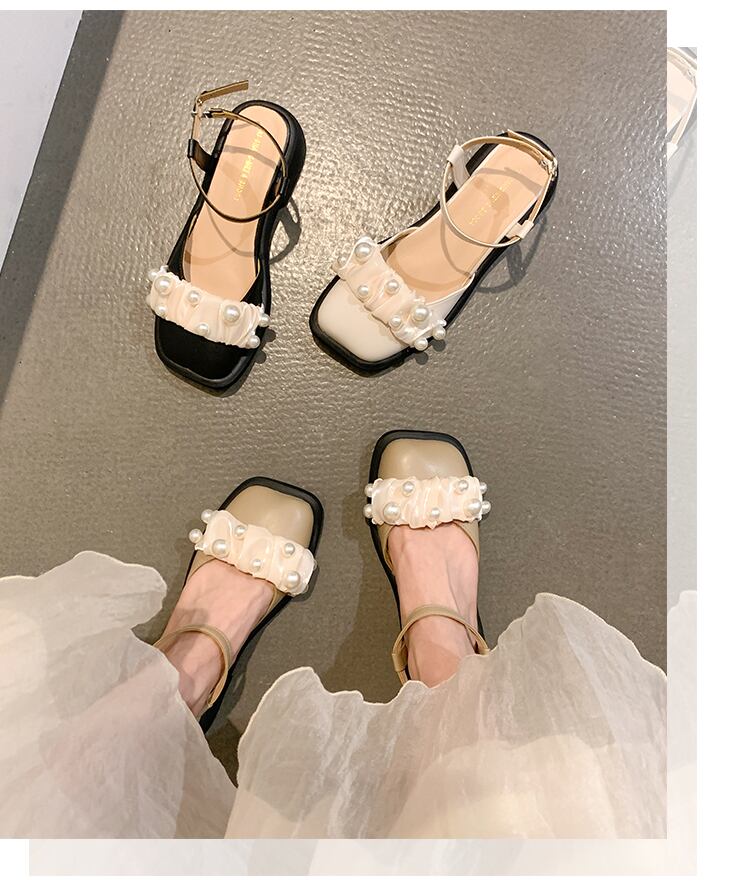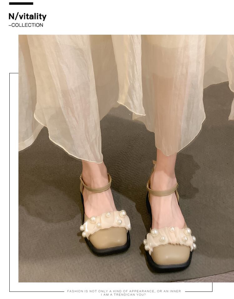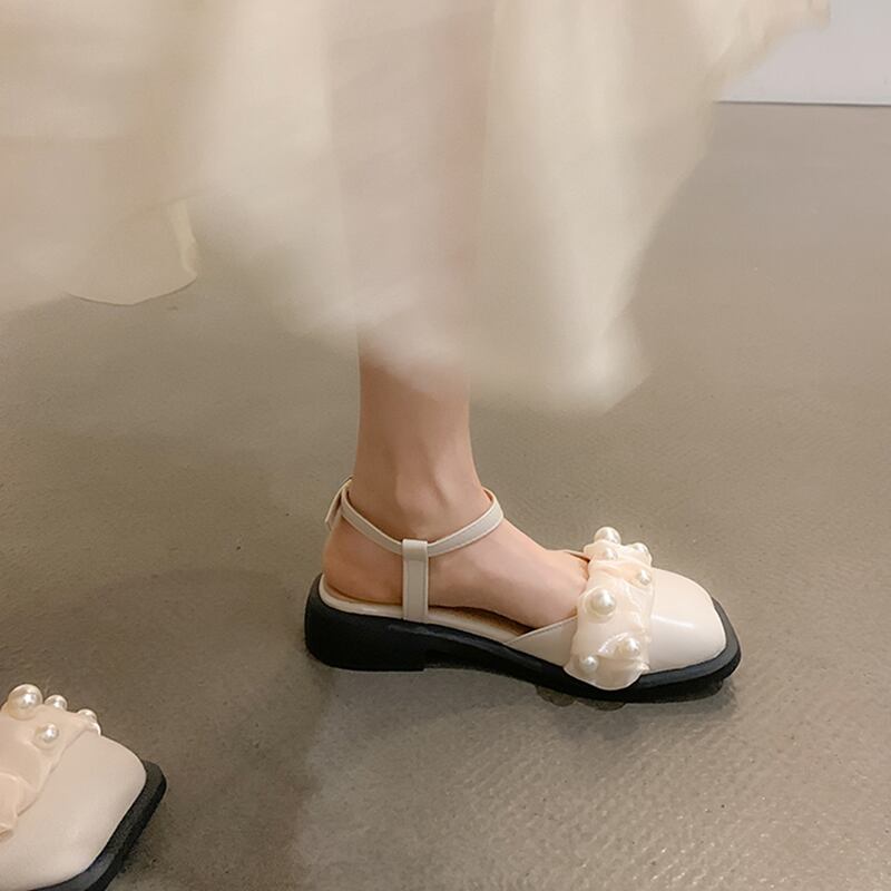 メリージェーンサンダルレディース2022夏ニューパールフラットトゥキャップ夏オールマッチフェアリースタイルレトロスモールレザーシューズ 靴 サマー 夏物 真珠 jxjxf737476073