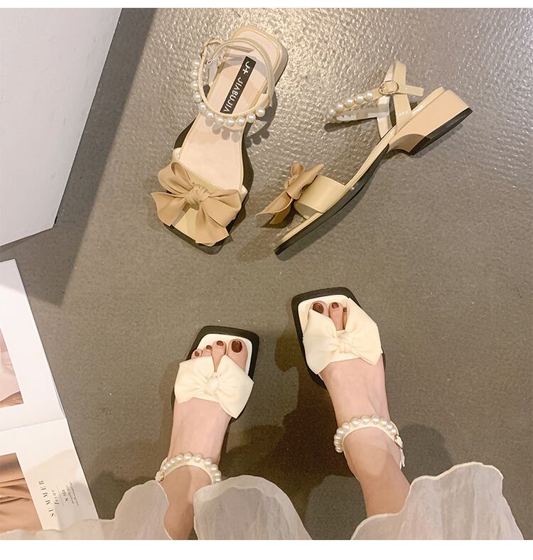 サマーサンダルレディース2022年新作オールマッチキュートボウパールローヒールスーパーファイアフェアリースタイルロマネスクシューズトレンド 靴 リボン 大人ガーリー スウィート カジュアル 夏物 真珠 jxjxf8399550732