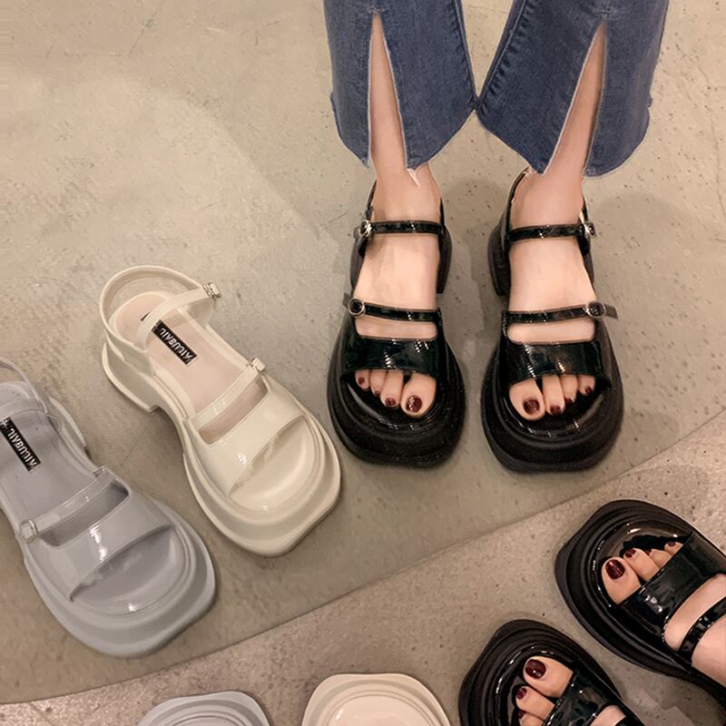 サンダル2022女性の新しい夏のベルトバックル厚いヒール滑り止めスーパーファッションオールマッチ小さなレトロなローマの靴 シューズ サマー 夏物 ハーネス jxjxf22729252196