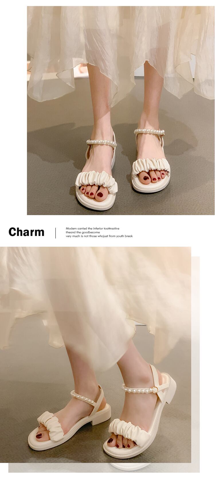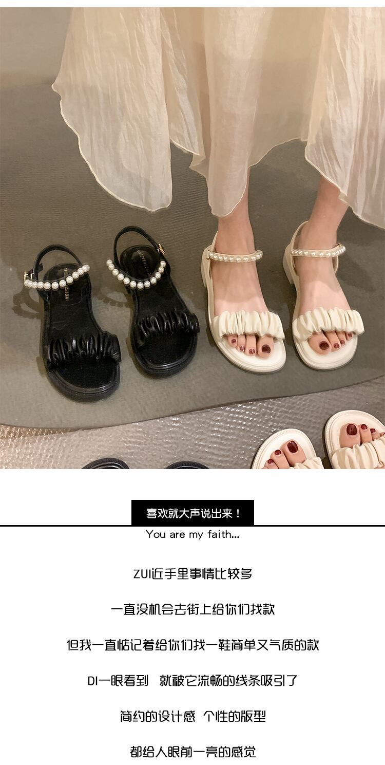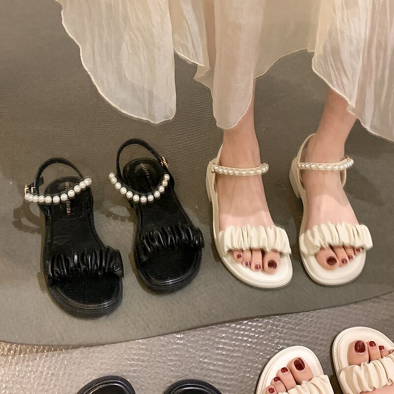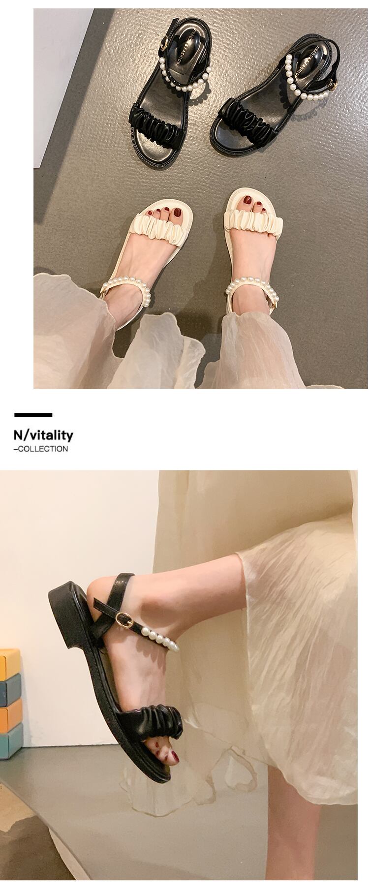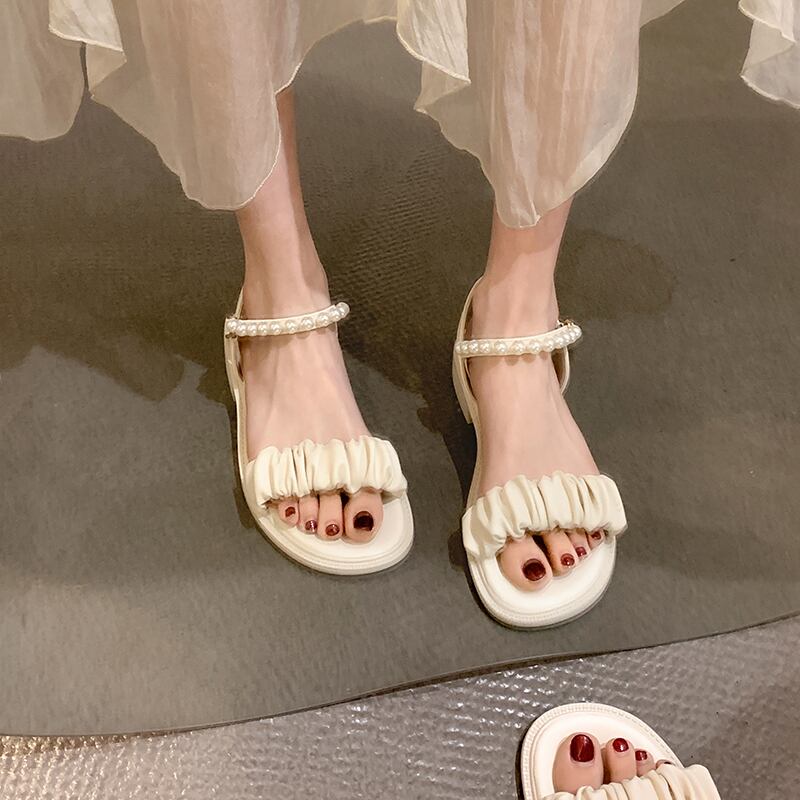 サンダル夏の女性の2022年の新しいファッション妖精風パールバックル平底滑り止めワードローマの靴の潮 シューズ サマー 夏物 真珠 jxjxf15421645830