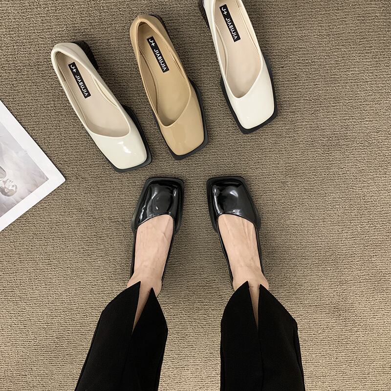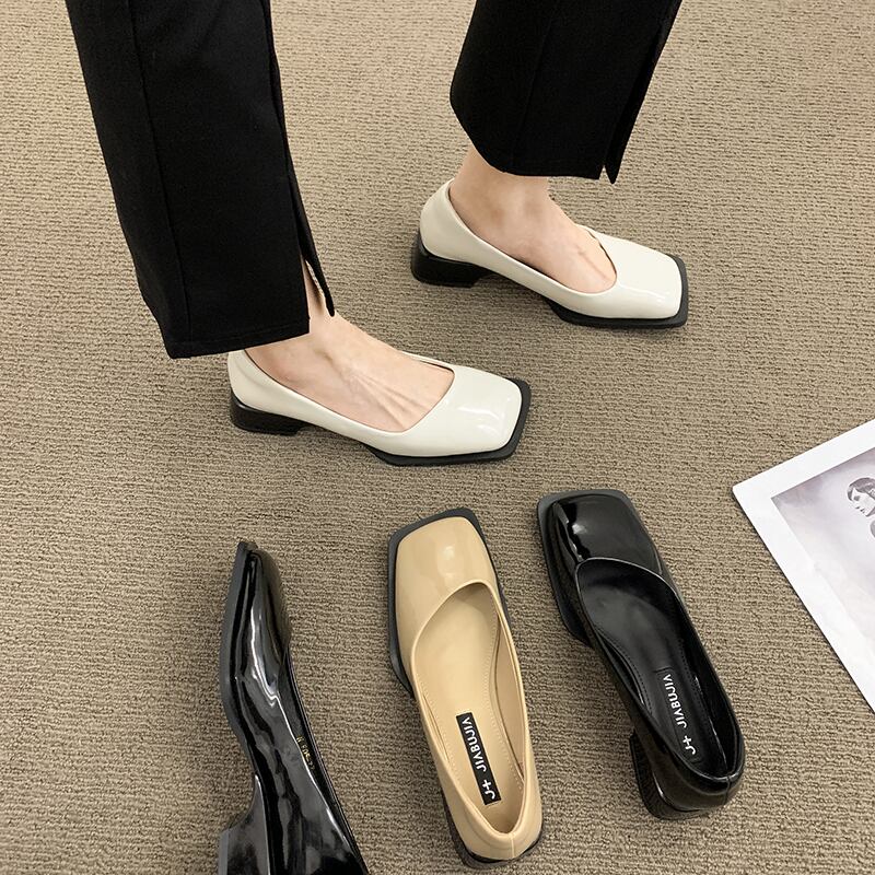 レトロなシングルシューズ女性の2022年夏の新しい浅い口の正方形の頭ローヒール滑り止めネット赤いファッションオールマッチ優しいスクープシューズ 靴 レッド サマー 夏物 スクウェア jxjxf12302871522