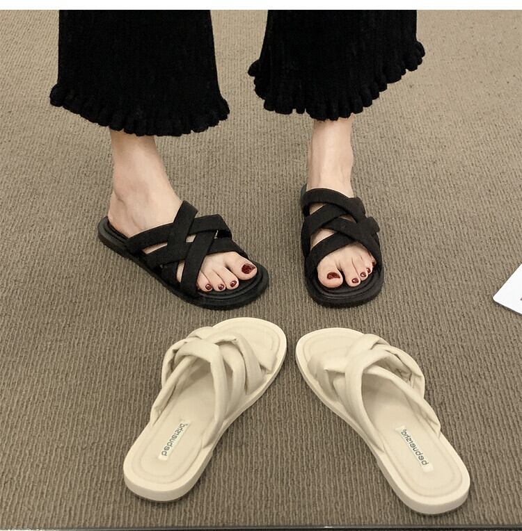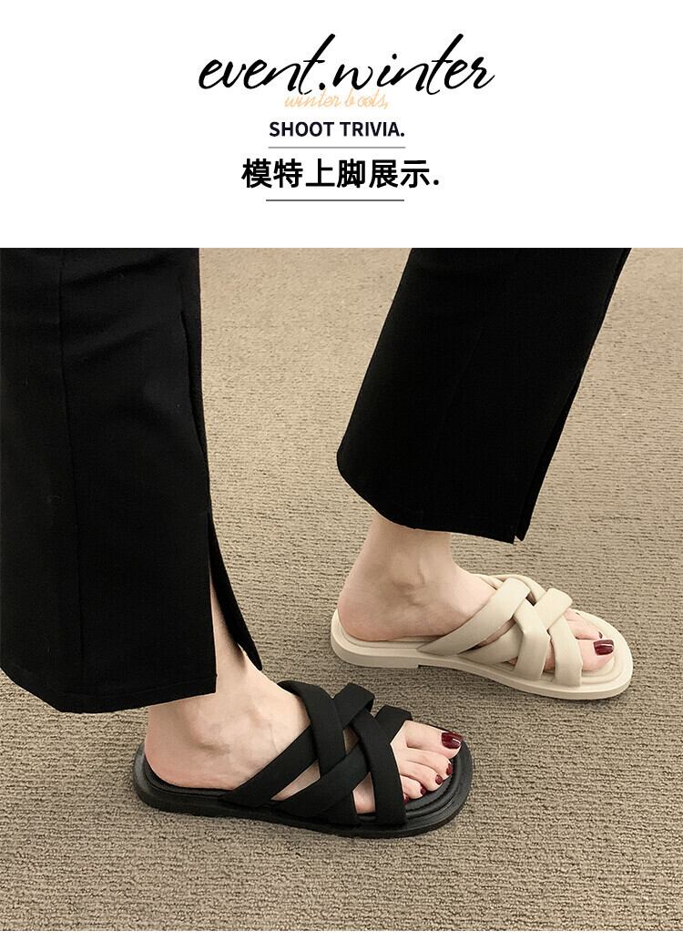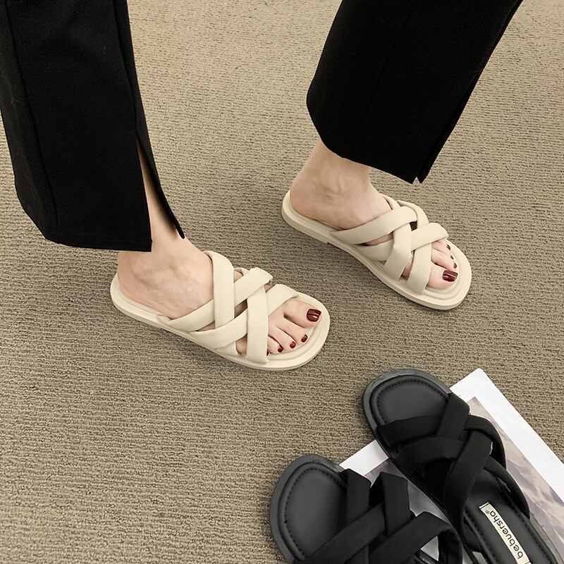 女性の2022年夏の新しいスタイルの織り平底滑り止めファッションオールマッチ海辺のカジュアルサンダルとスリッパ ミュール 靴 シューズ サマー 夏物 jxjxf95543131749