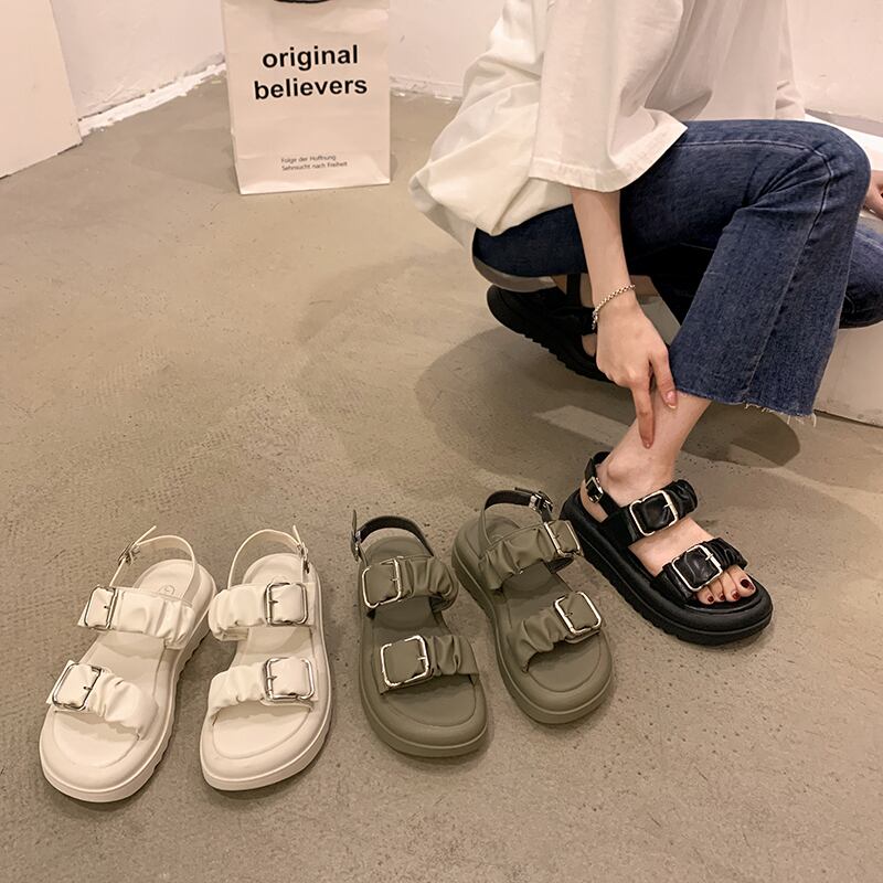 カジュアルサンダルレディース2022夏の新しいレトロな野生の学生厚い底滑り止めビーチシューズ潮 靴 サマー 夏物 jxjxf72611668569