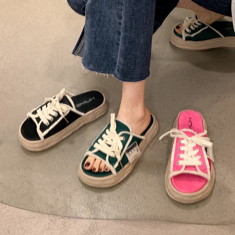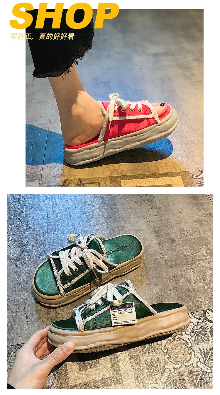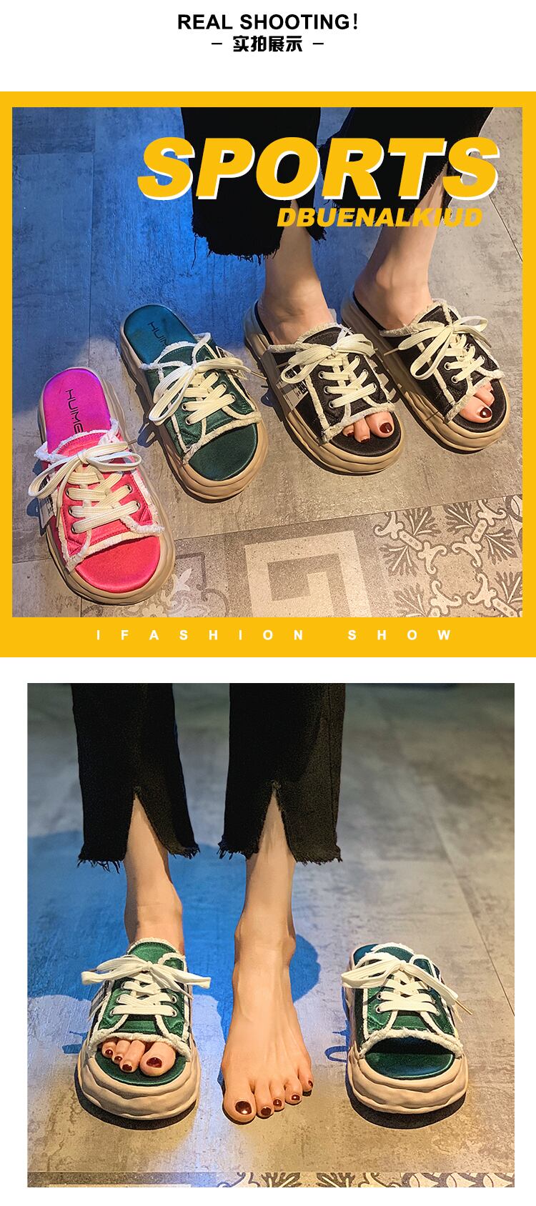 スリッパ女性の潮汐2022年夏の新しいファッションオールマッチレースアップ厚底滑り止め一言サンダルとスリッパを溶かす ミュール 靴 シューズ サマー 夏物 jxjxf65116530023