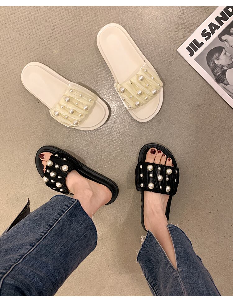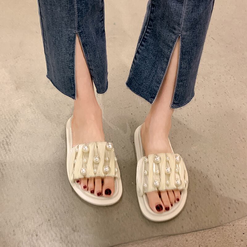 ネット赤いスリッパ女性の夏のアウターウェア2022新しいスーパーファッションオールマッチレトロパールフラットボトム滑り止めフリップフロップ レッド ミュール 靴 シューズ サマー 夏物 真珠 jxjxf36827609289