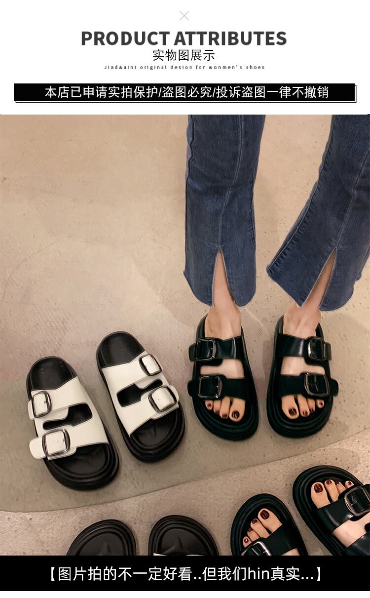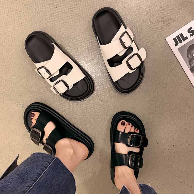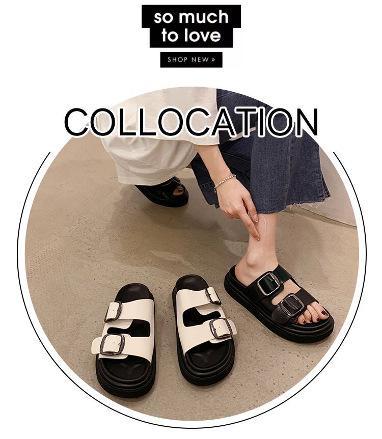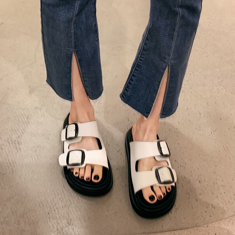 サンダルとスリッパ女性の2022年夏の新しいスタイルのベルトバックルスポンジケーキ滑り止めスーパーファッションオールマッチワードスリッパ ミュール 靴 シューズ サマー 夏物 ハーネス jxjxf33425669303
