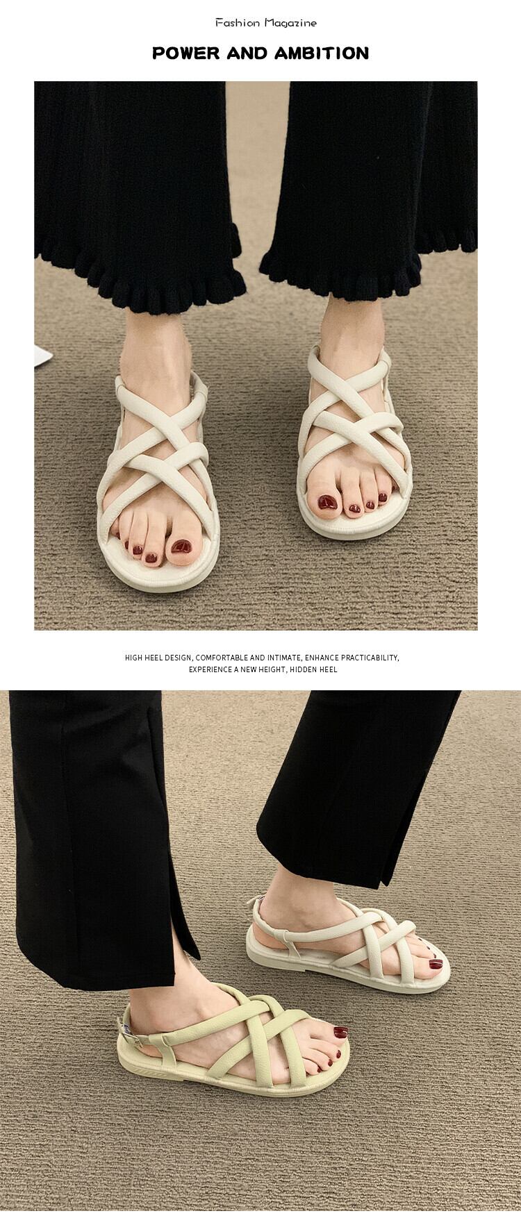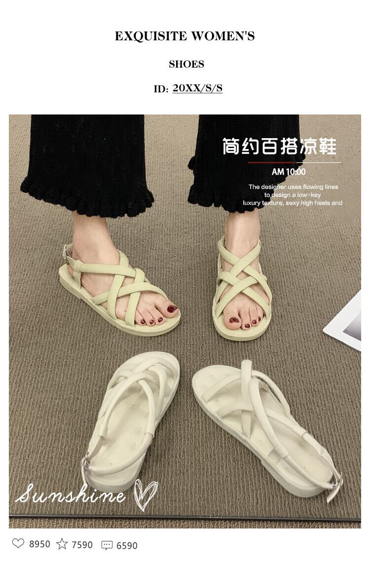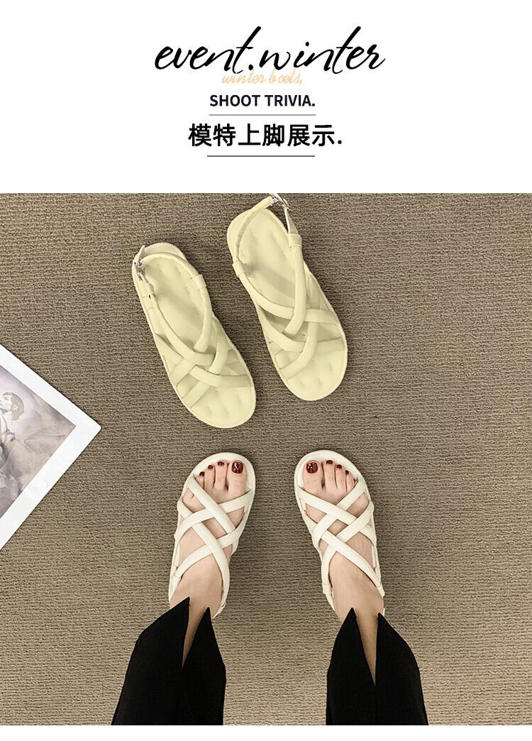 フラットローマンサンダルレディース2022夏の新しいクロスソフトボトム滑り止めネットレッドファッションオールマッチレトロビーチシューズ 靴 サマー 夏物 jxjxf16492335434