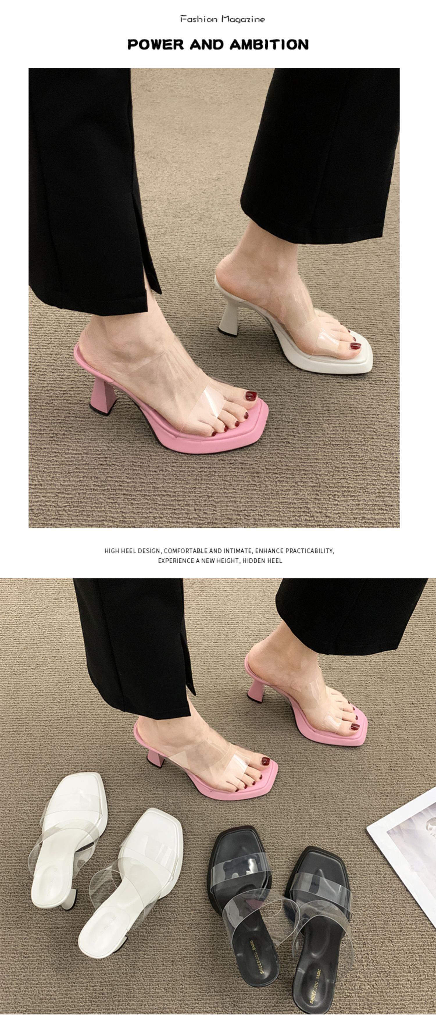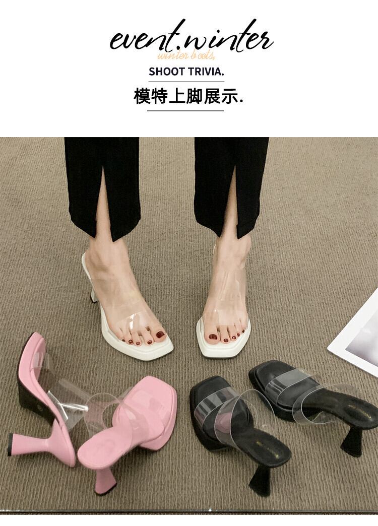 2022年夏に外で着用するネットの赤いスリッパの女性、新しいファッション、用途の広い、小さくて透明な、ハイヒールのサンダルとスリッパ レッド 靴 シューズ ミュール サマー 夏物 jxjxf20513471739