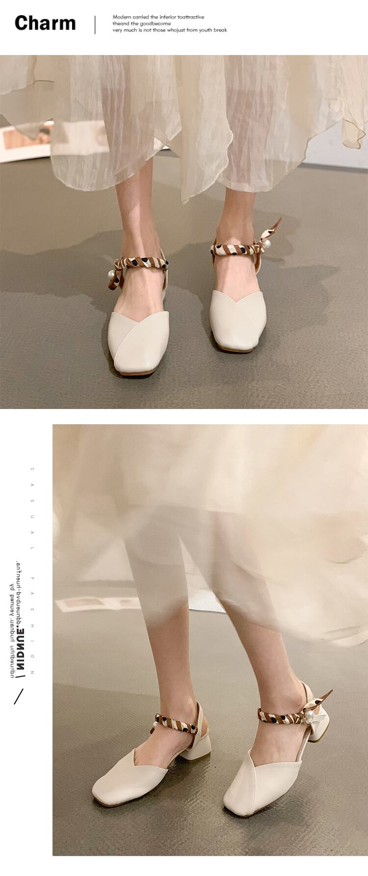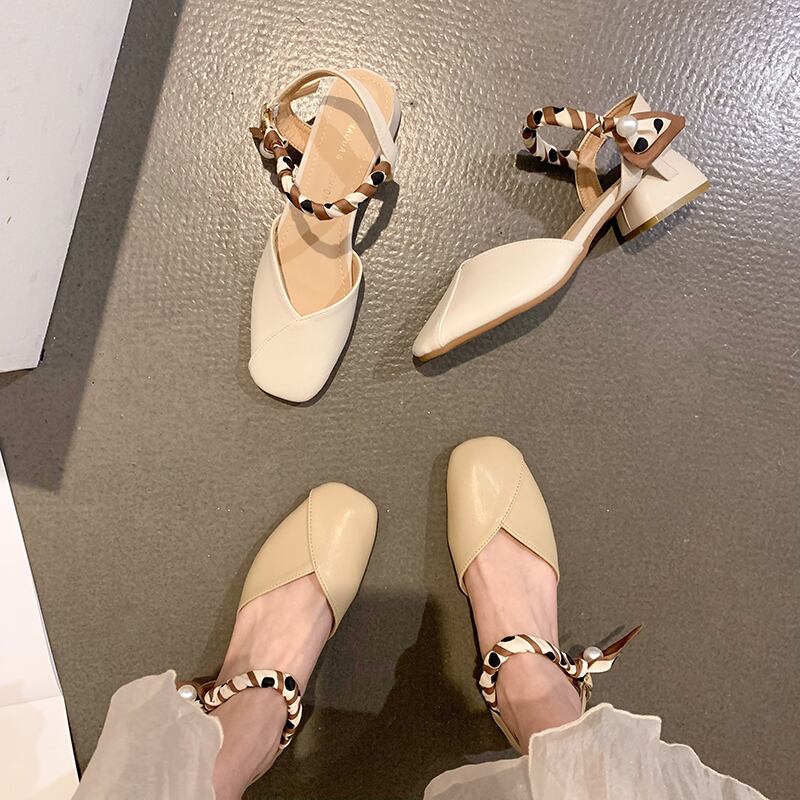 包頭サンダルレディース2022サマーパールミドルヒール滑り止めネットレッド多用途ジェントルレトロローマシューズ 靴 夏物 真珠 jxjxf99856941955