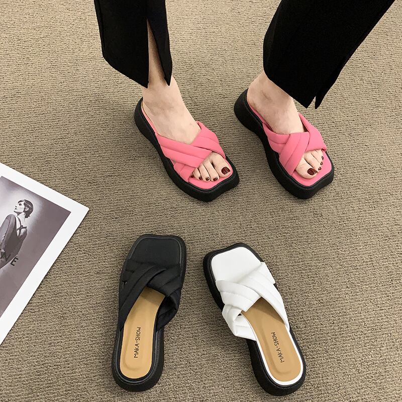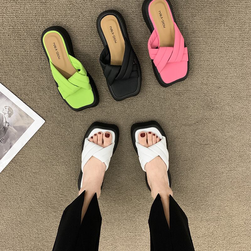 2022年の夏に外で着用するネットの赤いスリッパの女性、新しいスーパーオールマッチの小さなマフィンケーキの厚い底の滑り止めのサンダルとスリッパの潮 レッド ミュール 靴 シューズ サマー 夏物 jxjxf63521762834