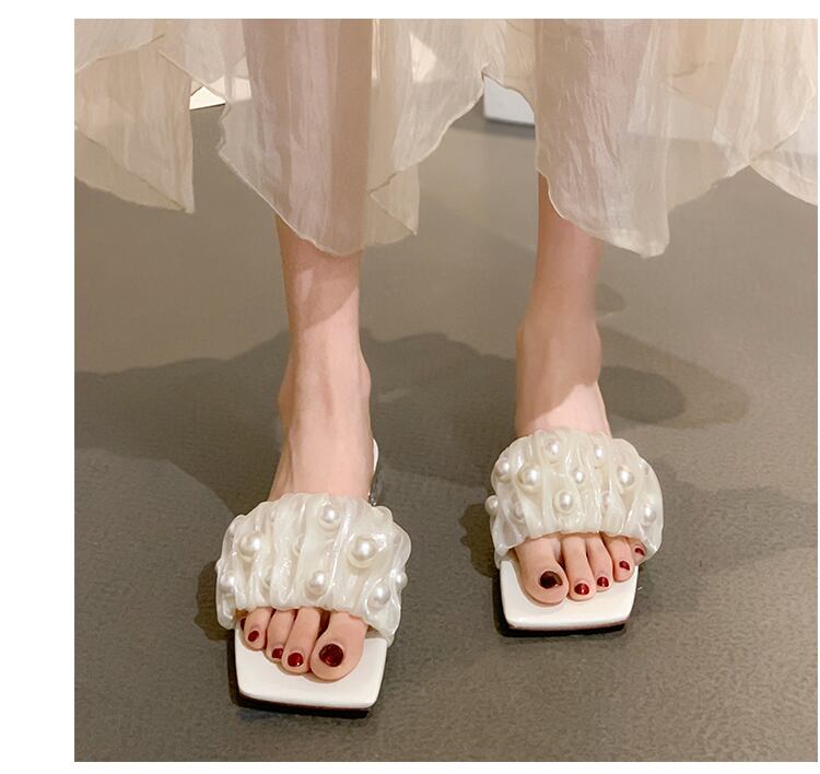 夏のスリッパの女性は2022年の新しいネットレッドオールマッチフェアリーウィンドパールクリスタルと滑り止めのワンワードサンダルとスリッパを履いています ミュール 靴 シューズ サマー 夏物 スリッポン 真珠 jxjxf86960557270