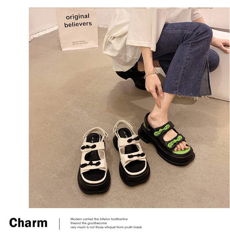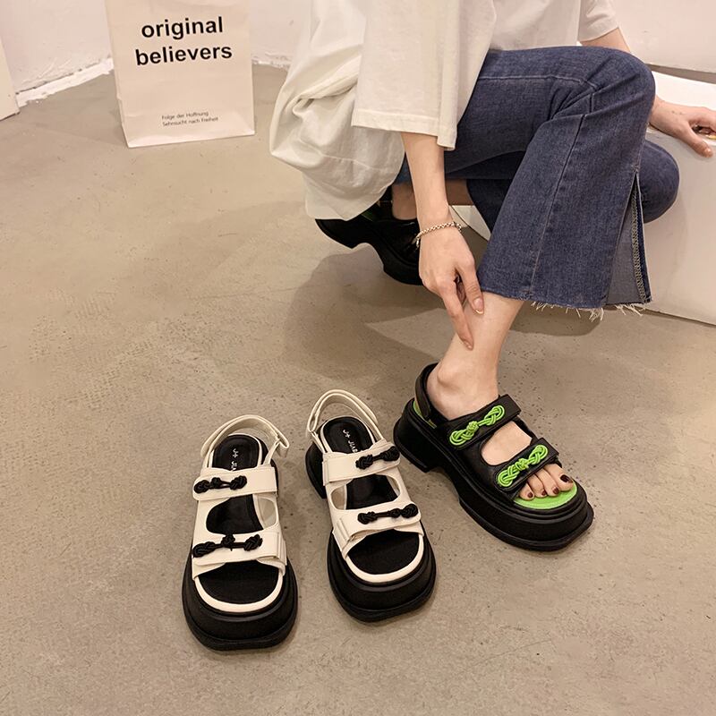 サンダル女性の2022年夏新しいベルクロの厚いかかと滑り止めネット赤いファッションオールマッチ小さなスポーツローマの靴 シューズ レッド ヒール サマー 夏物 jxjxf80947433000