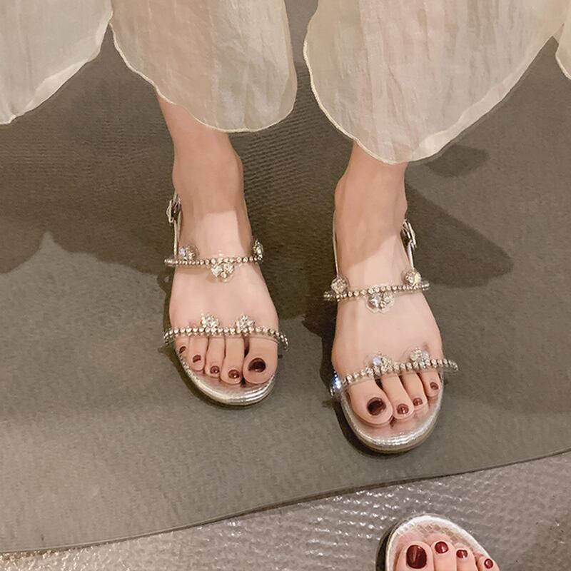 サンダル2022ウィメンズニューオールマッチサマーラインストーンフラットノンスリップネットレッドスーパーファッションフェアリースタイルローマンシューズ 靴 夏物 jxjxf42512675353