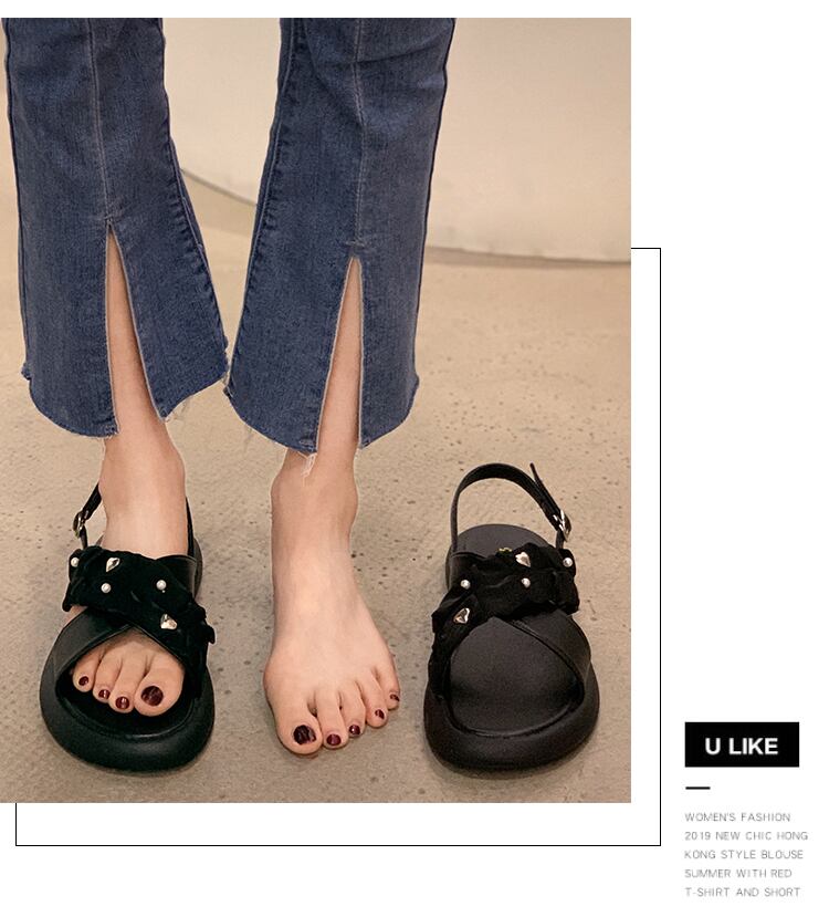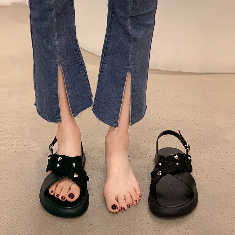 ネット赤いサンダル女性2022年夏の新しいファッションオールマッチレトロ大学生フラット滑り止めカジュアルビーチシューズ 靴 レッド サマー 夏物 jxjxf8907623864