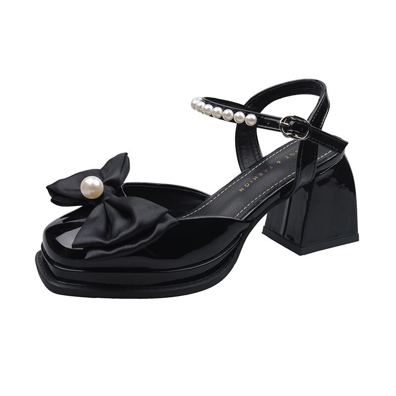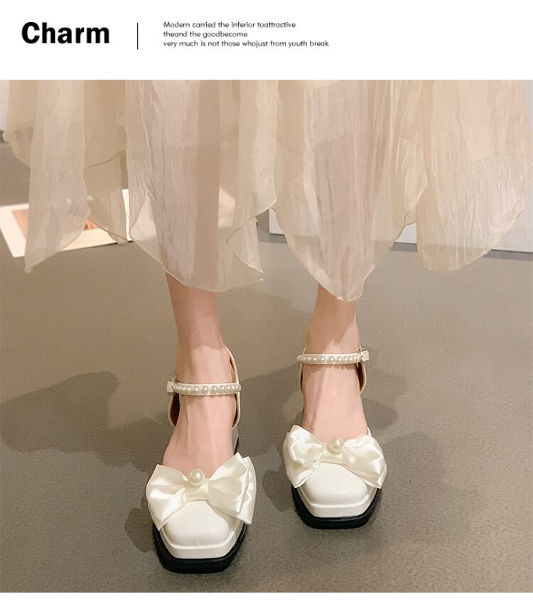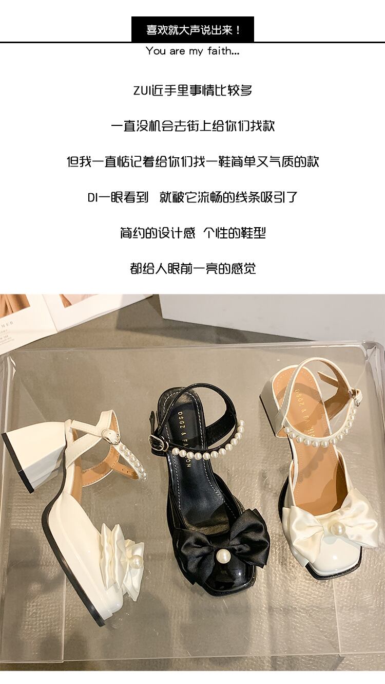かかとの女性の2022年夏の新しい弓真珠の厚いかかとのファッションオールマッチの妖精スタイルのレトロなつま先のサンダル jxjxf41887397207