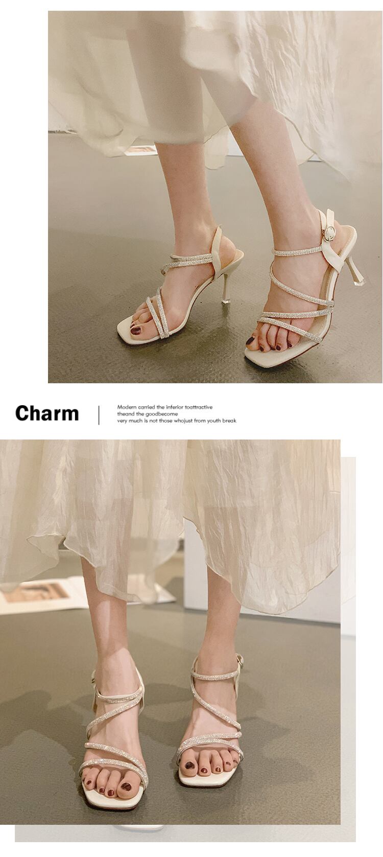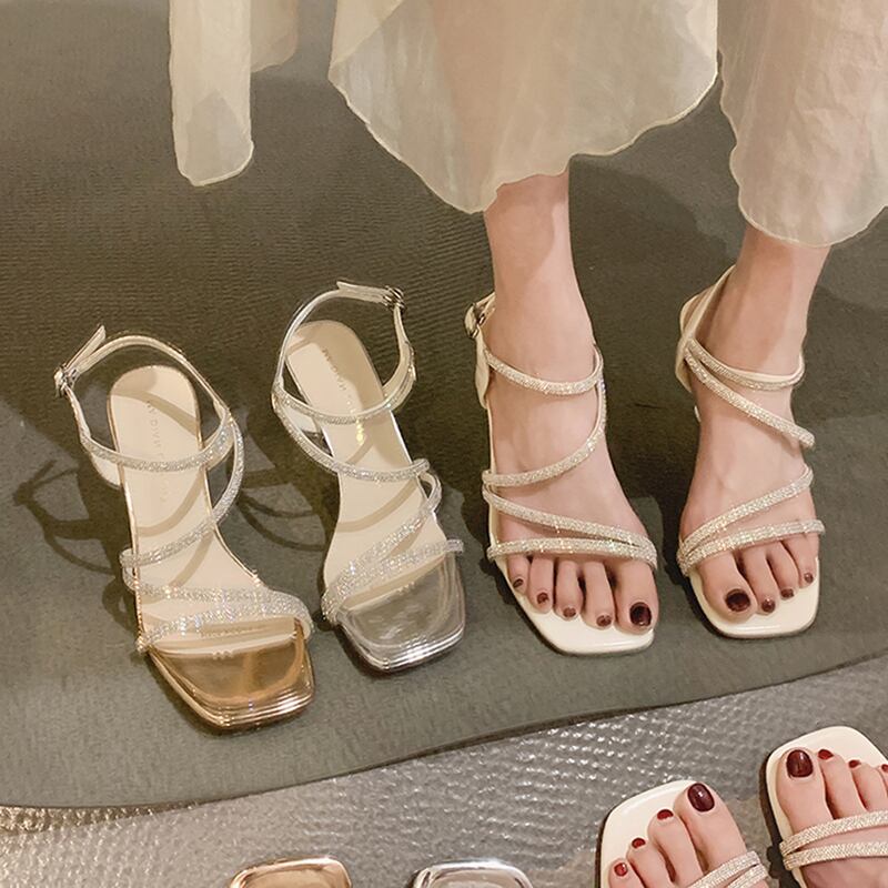 ローマのサンダル女性の2022年夏の新しいラインストーンスティレットネットレッドファッションオールマッチフェアリースタイルレトロハイヒール 靴 シューズ サマー 夏物 jxjxf19344318220