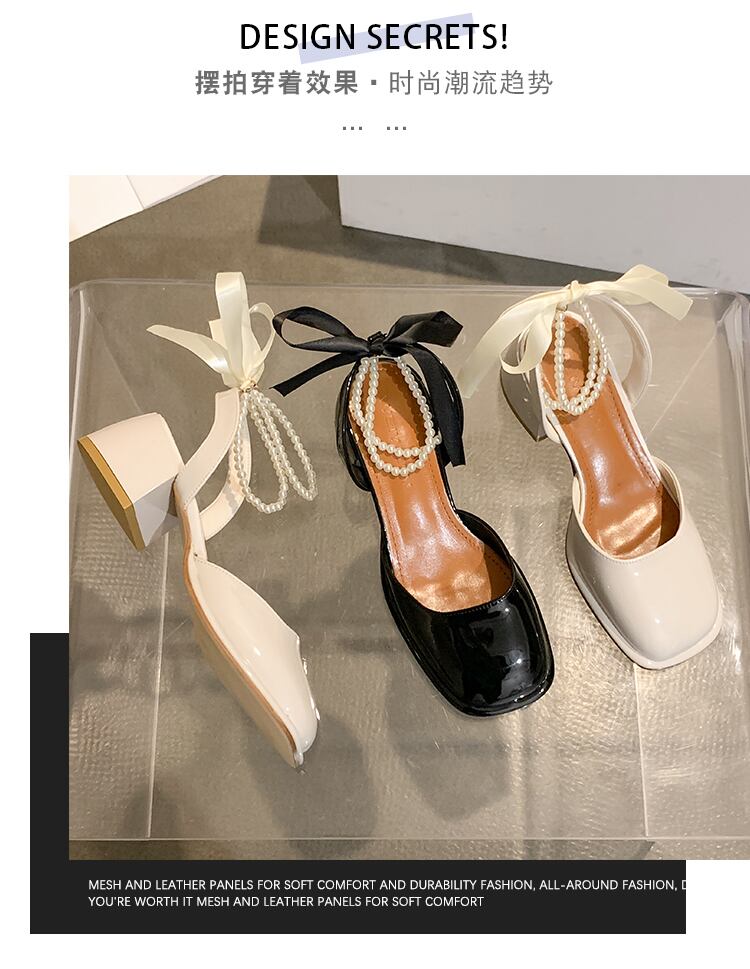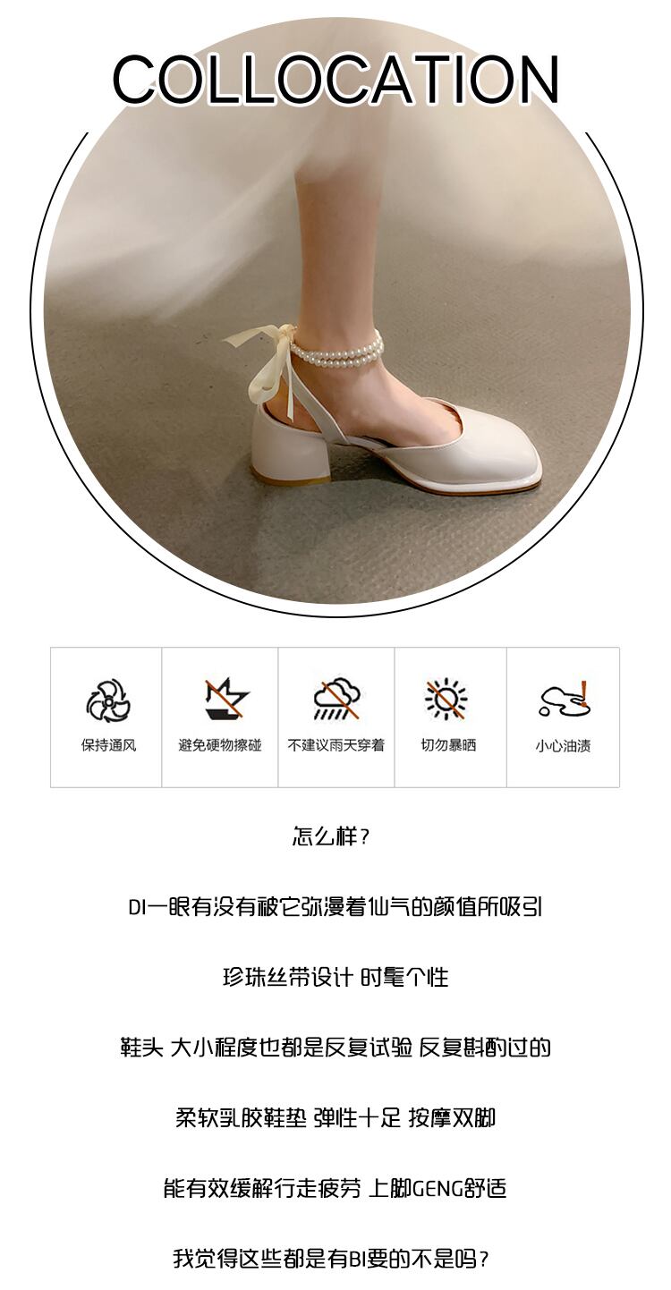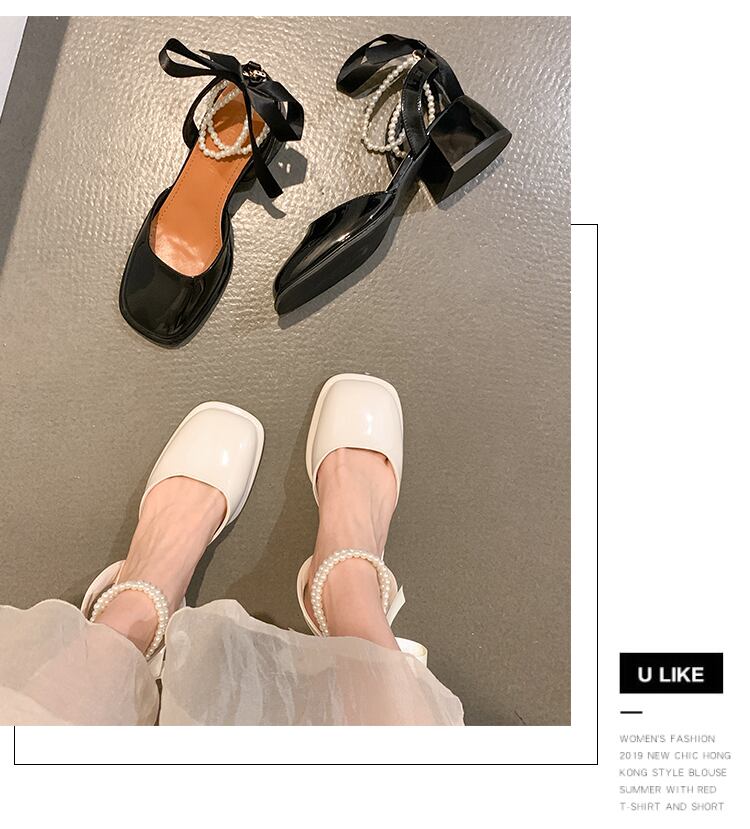包頭サンダルレディース2022年夏ニューパールシックヒールノンスリップスーパーファッションオールマッチフェアリースタイルローマシューズ 靴 サマー 夏物 真珠 jxjxf71856096040
