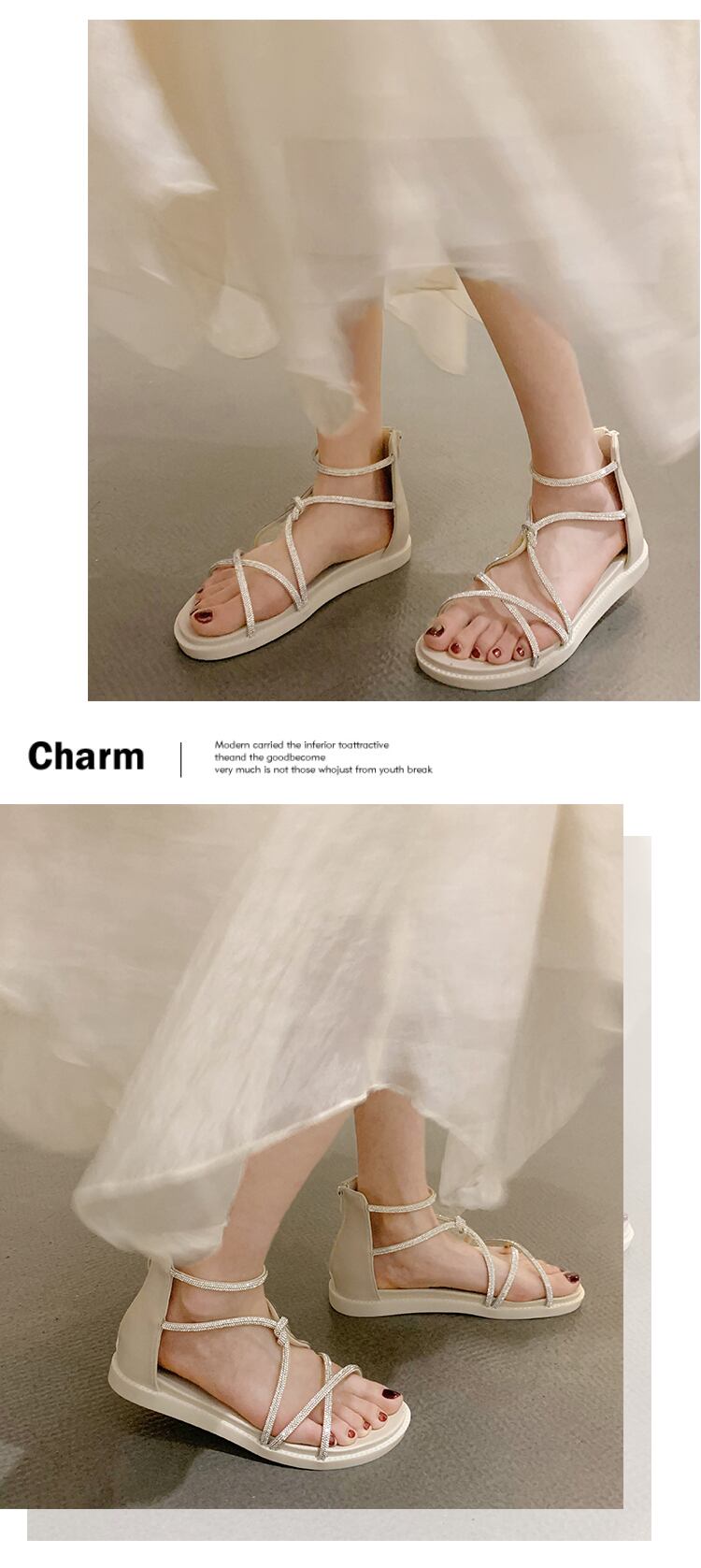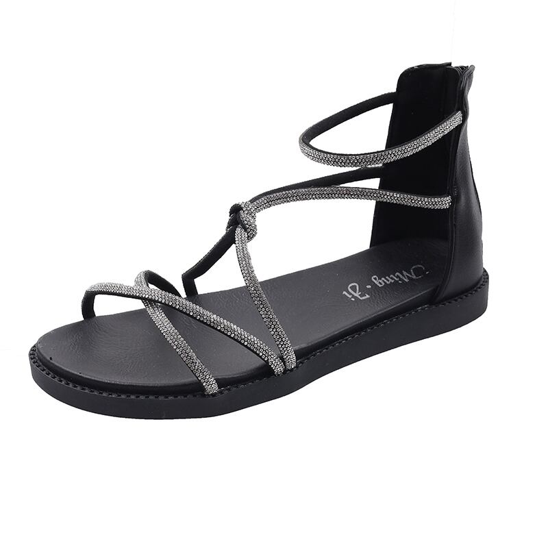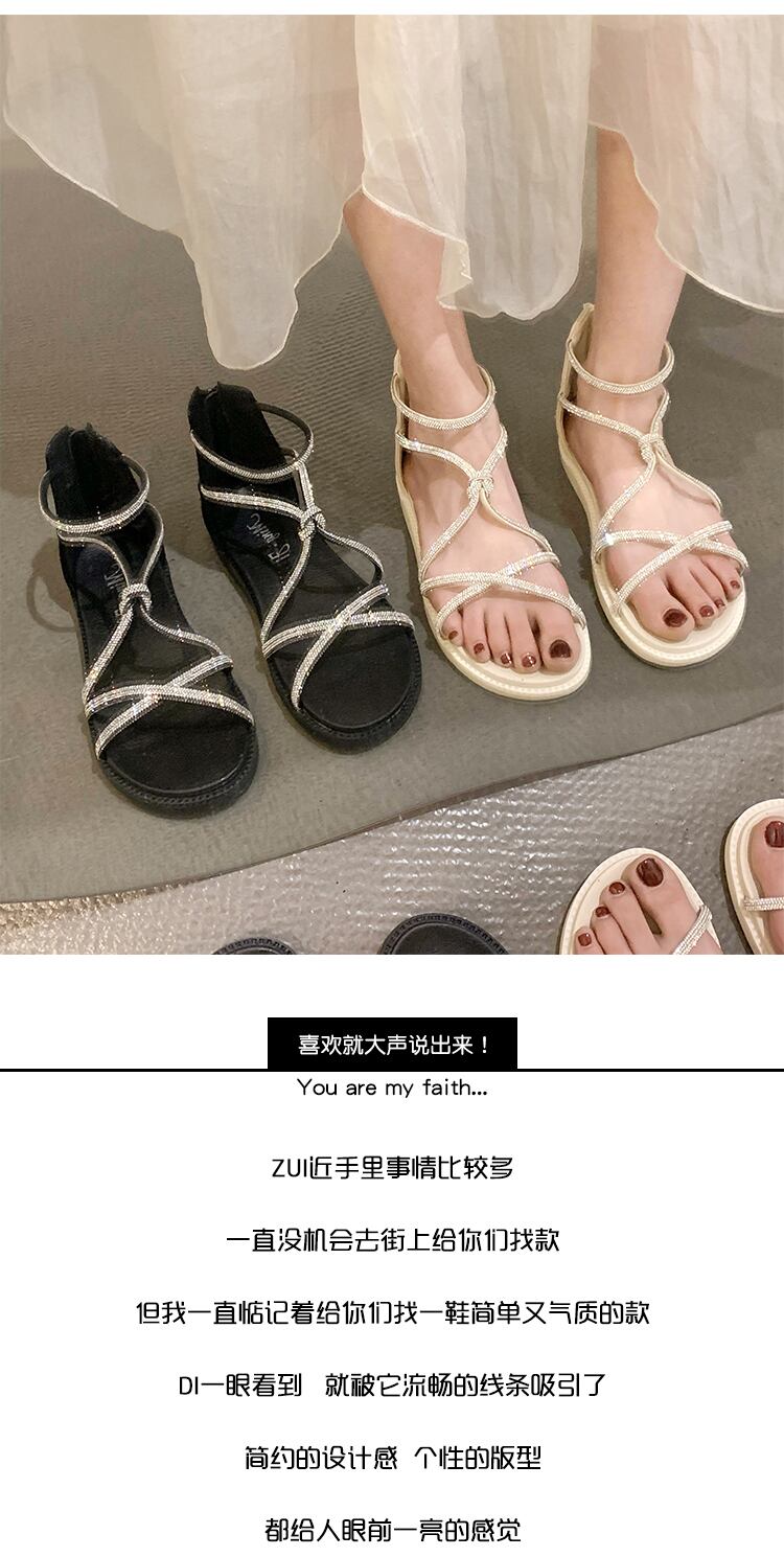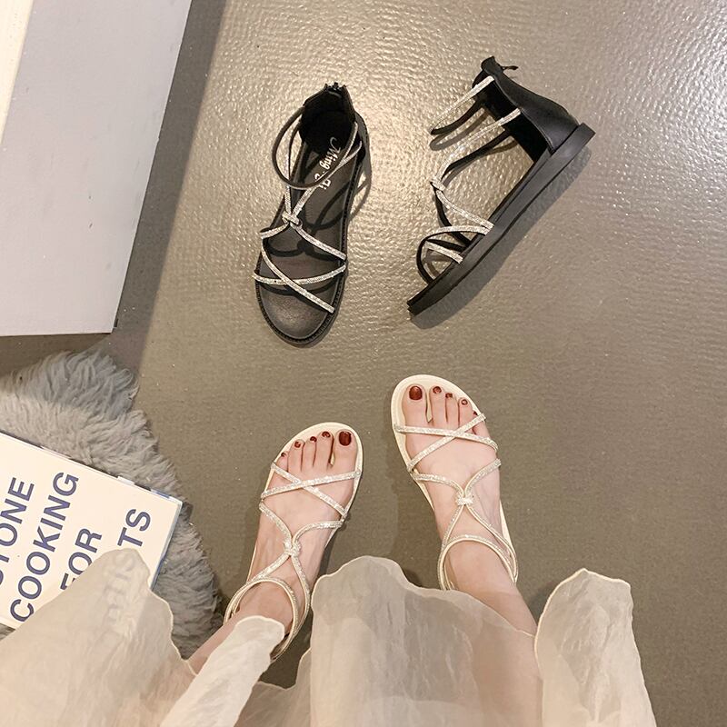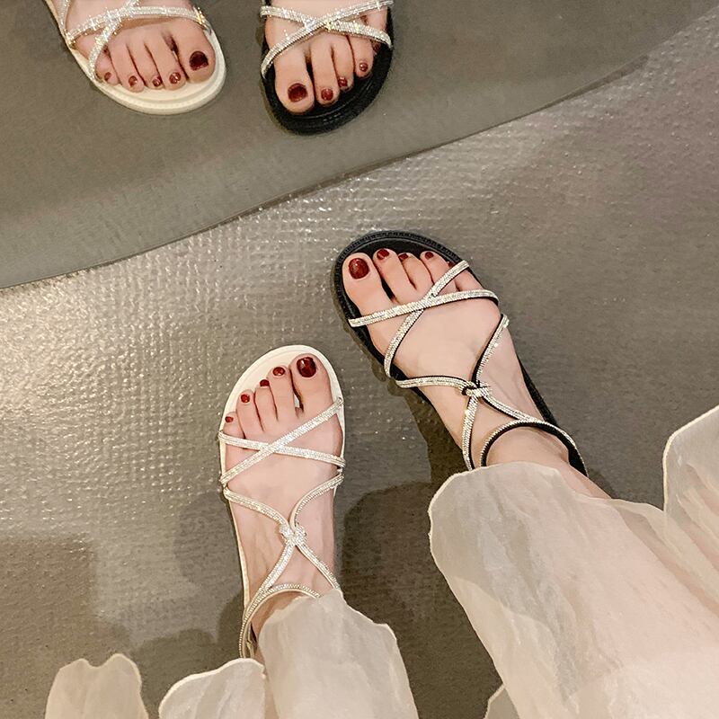 夏のサンダル女性2022ネットレッドファッションオールマッチレトロラインストーンフラット滑り止めローマの靴instide シューズ サマー 夏物 jxjxf62485744880