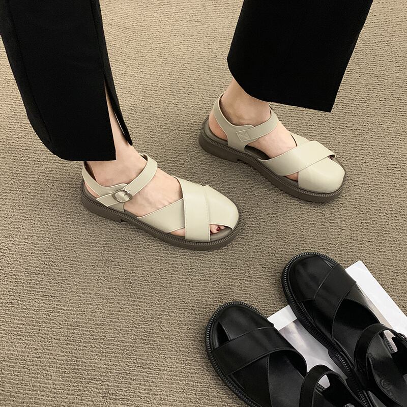 包頭サンダル女性2022年夏の新しいオールマッチ学生レトロバックルフラット滑り止めローマの靴instide シューズ サマー 夏物 jxjxf57057677896