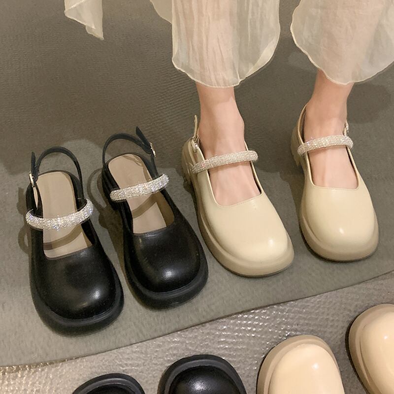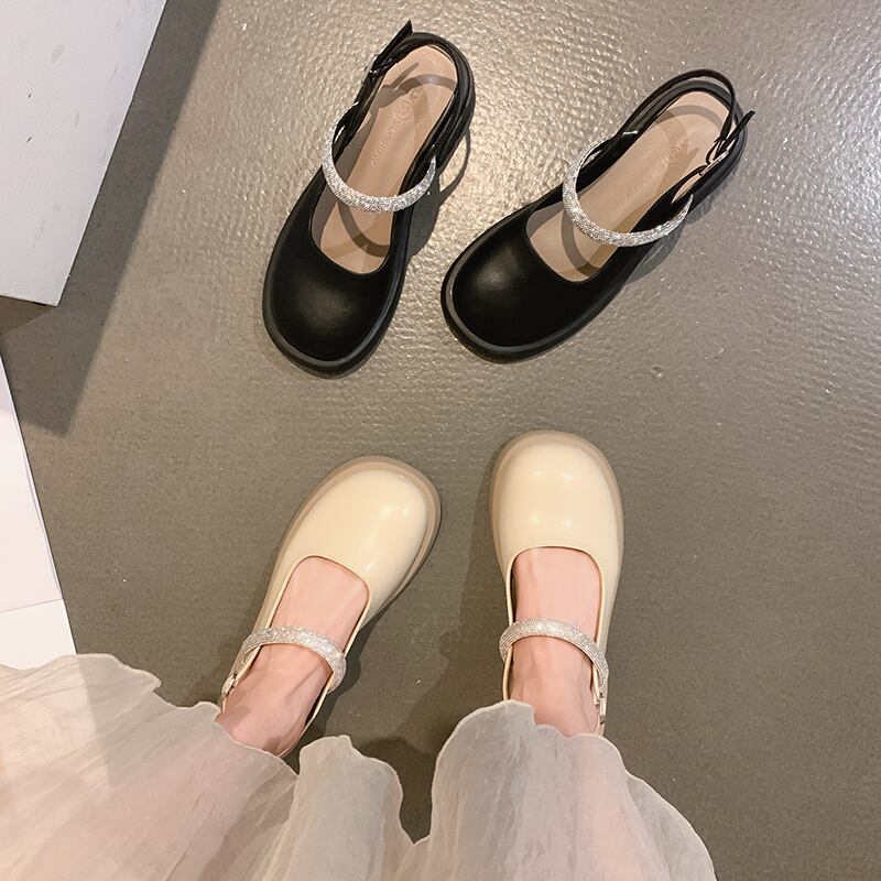 包頭サンダル女性の2022年夏の新しいラインストーンフラット滑り止めファッションオールマッチフェアリースタイルレトロレザーシューズ 靴 サマー 夏物 jxjxf1375453007