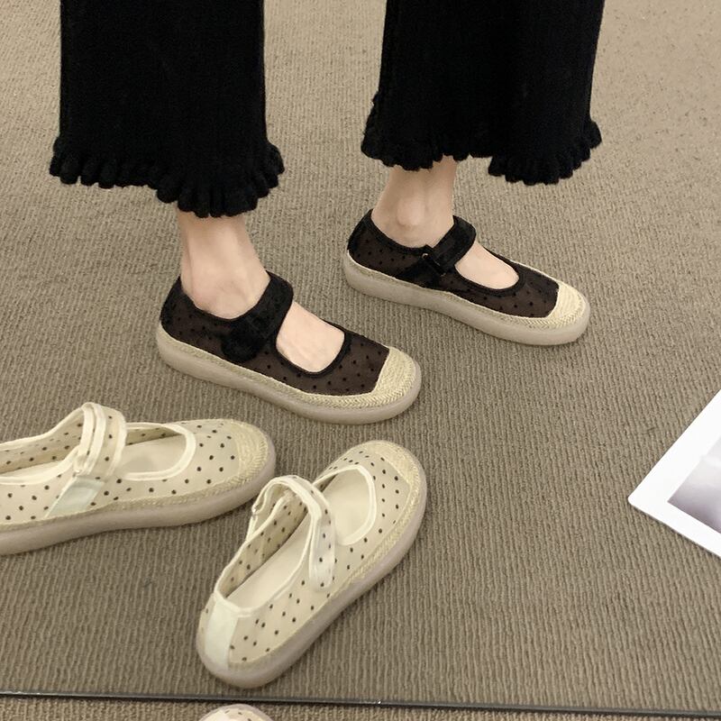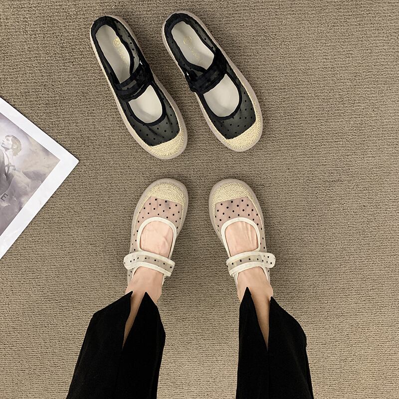 レトロシングルシューズレディース2022夏ニューウェーブポイントラウンドヘッド浅い口フラットボトム滑り止めネットレッドファッションオールマッチフィッシャーマンシューズ 靴 サマー 夏物 jxjxf95663806663