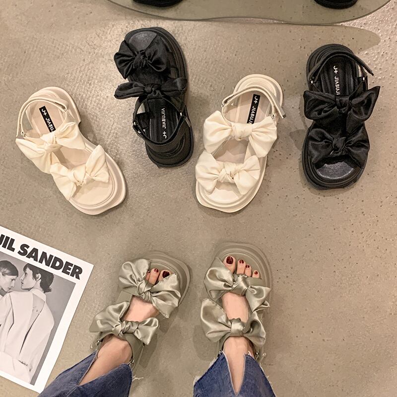 サンダルの女性の夏の服2022新しいスタイルの弓の厚いかかと滑り止めのスーパーファッションオールマッチの妖精スタイルのローマの靴 シューズ リボン ヒール サマー 夏物 jxjxf5895250872