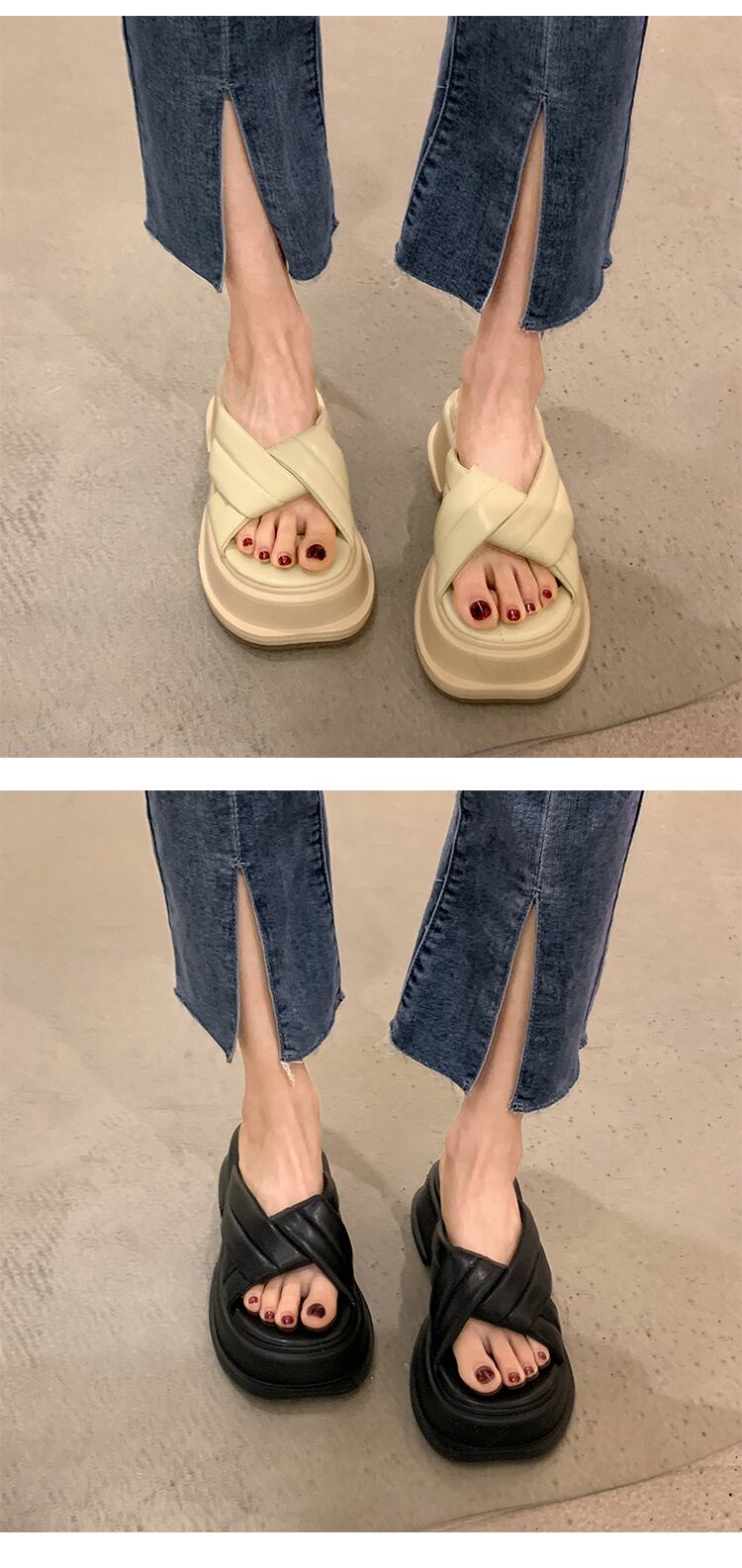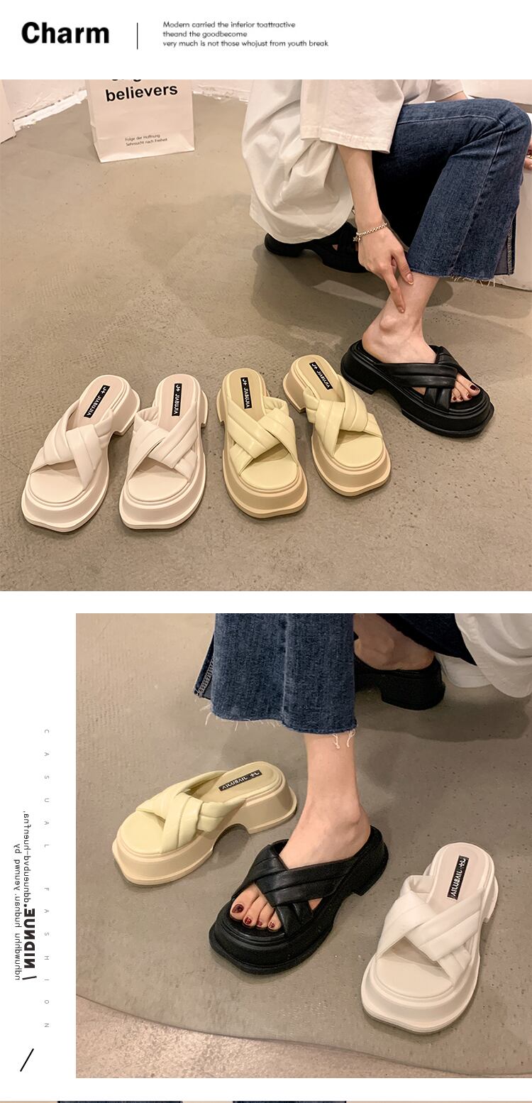 スリッパ夏の女性は2022年の新しい厚いヒールの滑り止めネットの赤いファッションオールマッチの小さなレトロなビーチサンダルを着用します レッド ミュール 靴 シューズ サマー 夏物 jxjxf73059571088