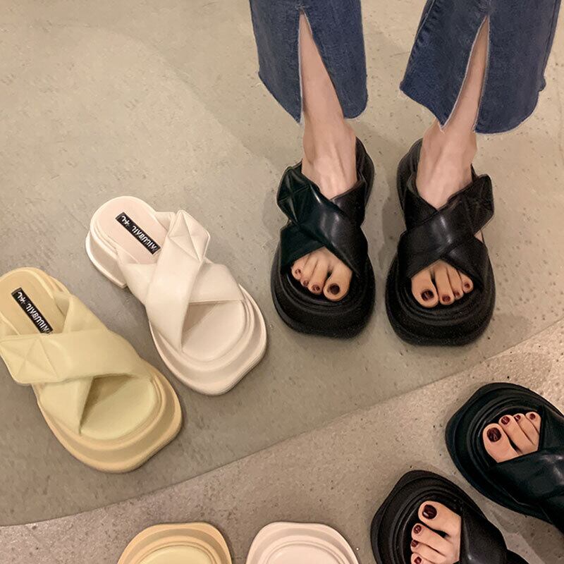 スリッパ夏の女性は2022年の新しいファッションオールマッチクロスワードベルクロ厚手のヒール滑り止めサンダルとスリッパタイドを着用します ミュール 靴 シューズ サマー 夏物 jxjxf26974468542