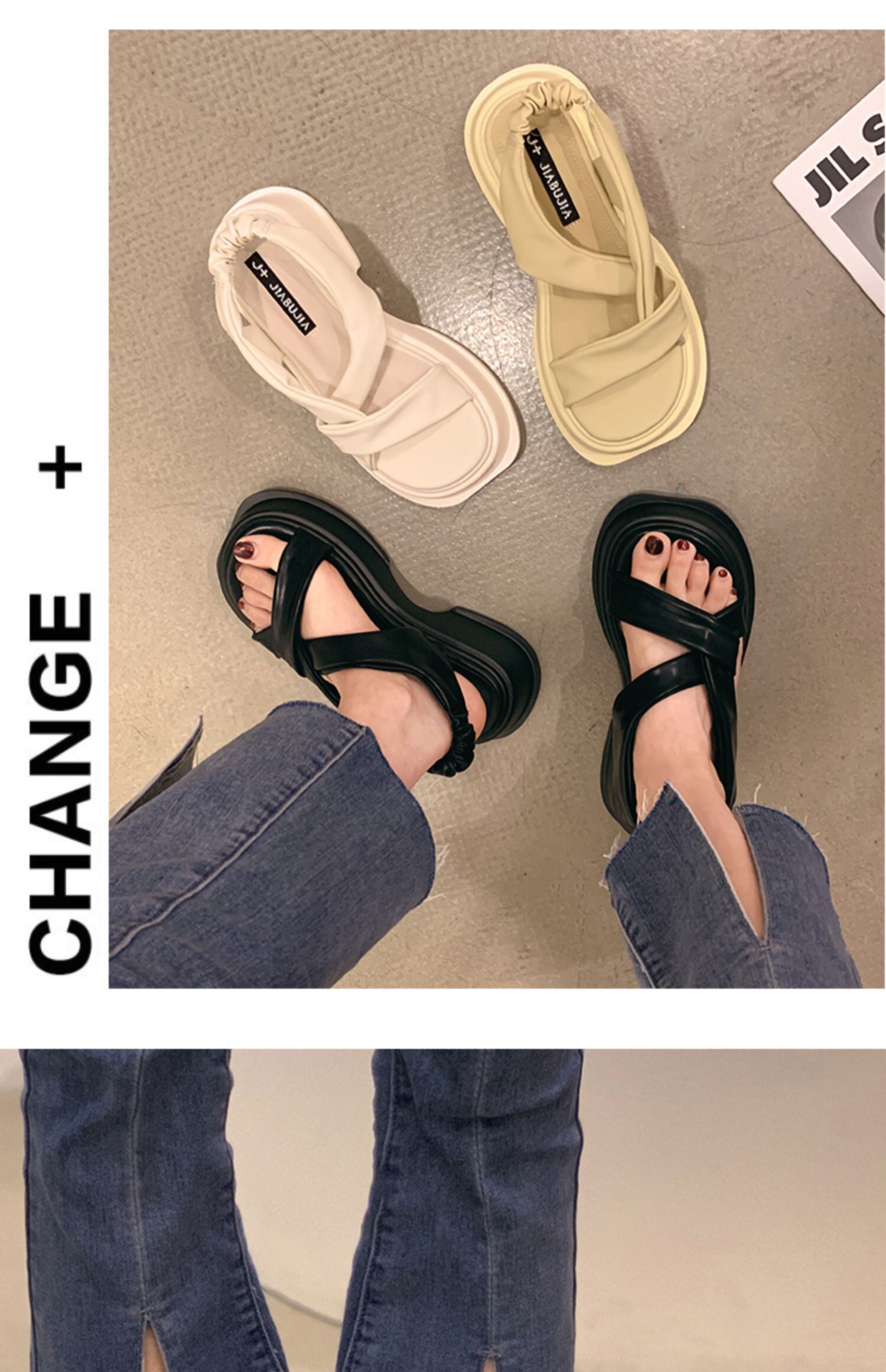 サンダル2022女性の新しい夏の厚いヒール滑り止めネット赤スーパーオールマッチレトロローマのビーチシューズinstide 靴 レッド サマー 夏物 jxjxf9031574182