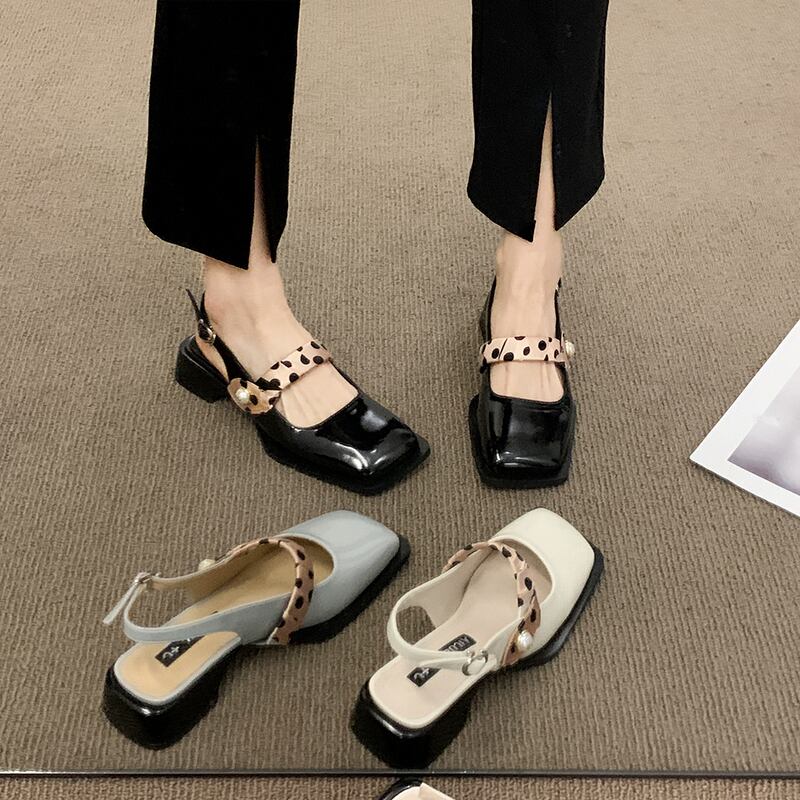 ネットレッドサンダルレディース2022夏ニューファッションオールマッチスクエアヘッドレトロローヒールノンスリップメアリージェーンスモールレザーシューズ 靴 サマー 夏物 スクウェア jxjxf84051255747