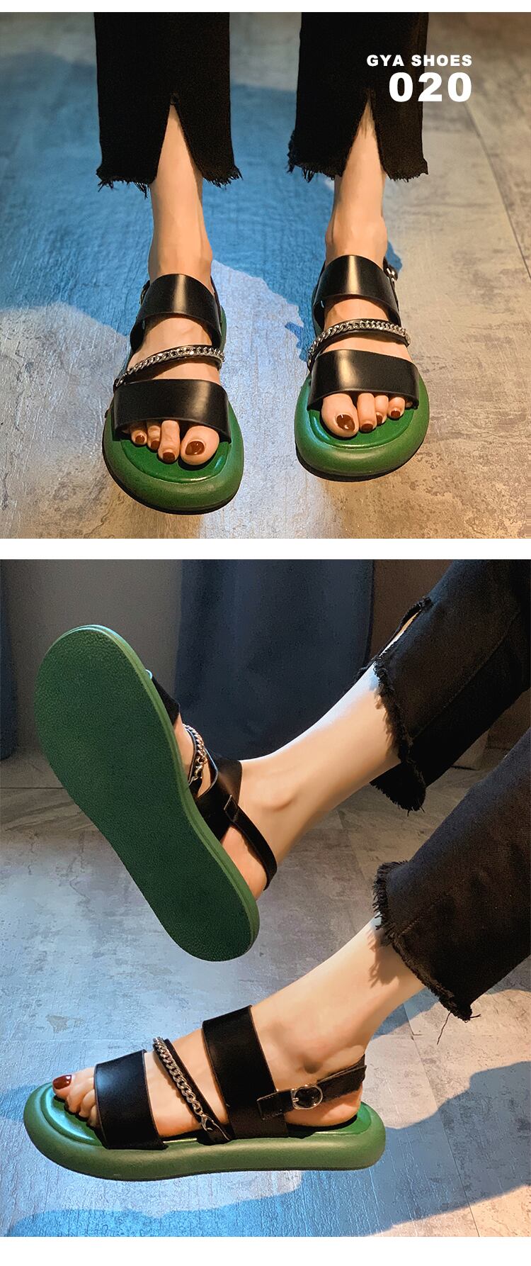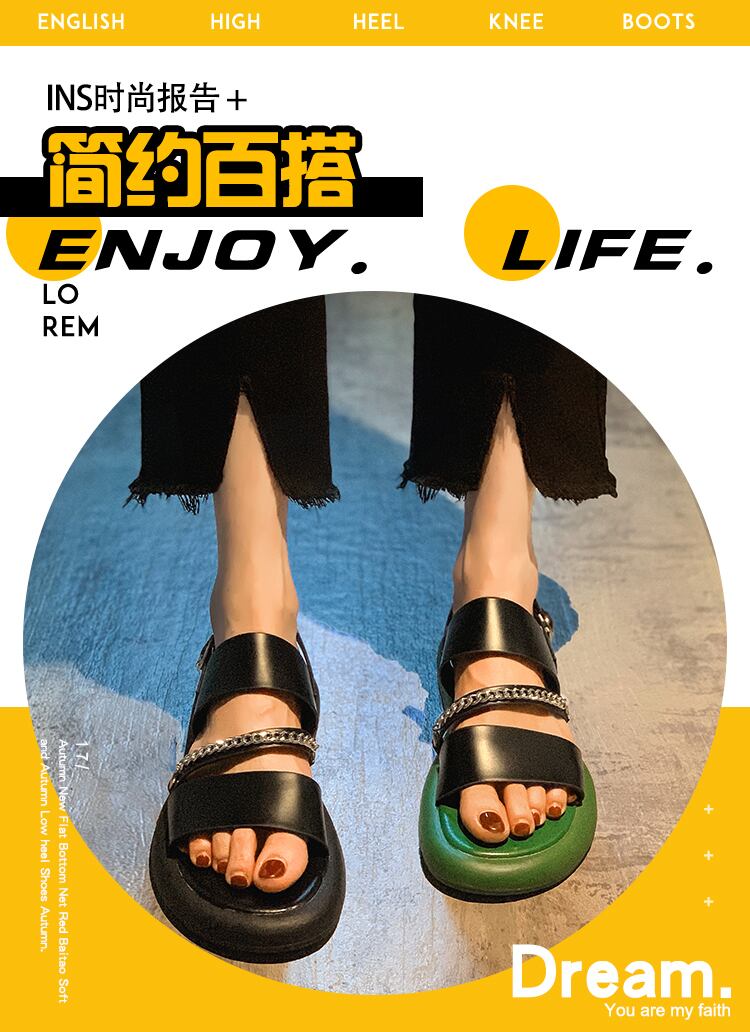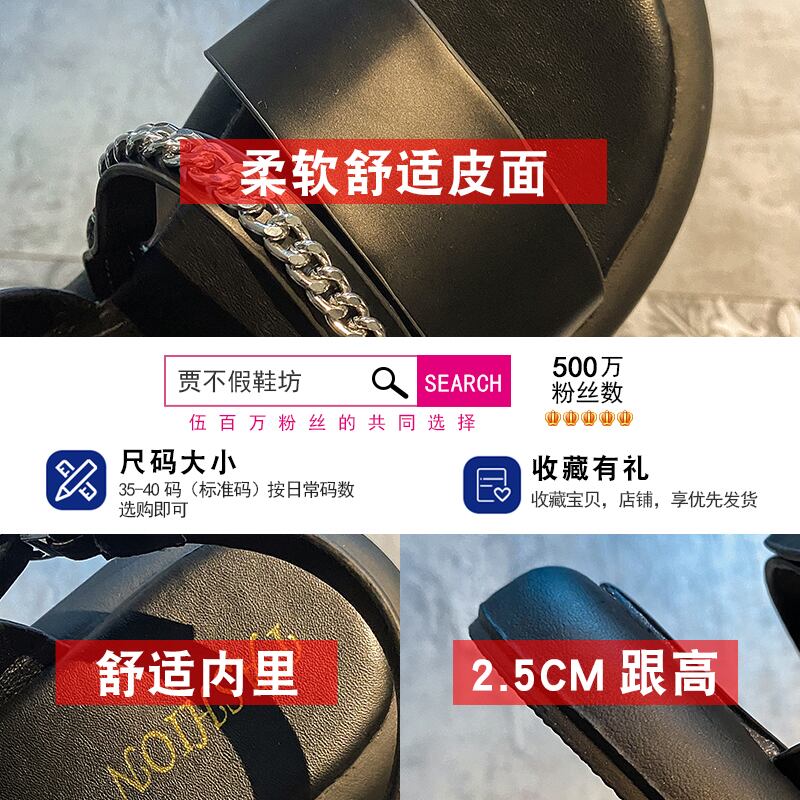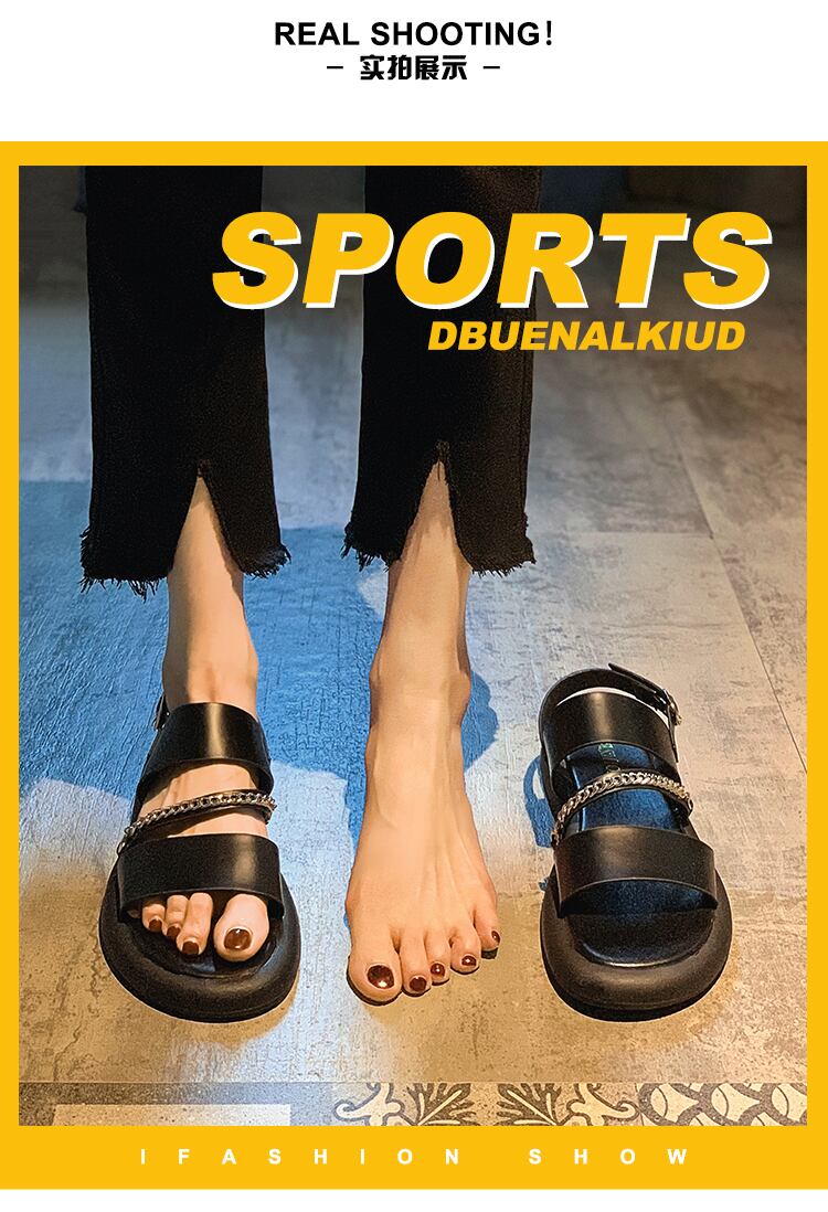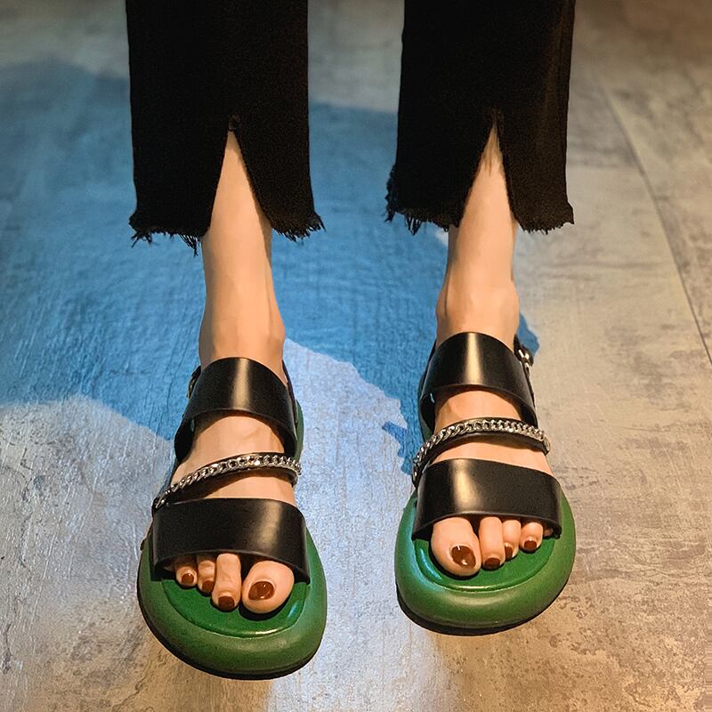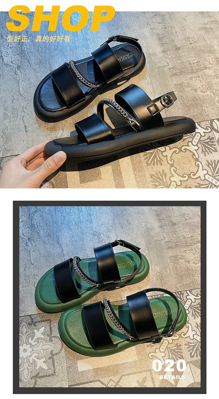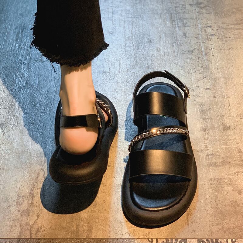 ローマのサンダルレディース2022年夏の新しいファッションオールマッチレトロメタルチェーン平底滑り止めビーチシューズ潮 靴 サマー 夏物 jxjxf13099715192