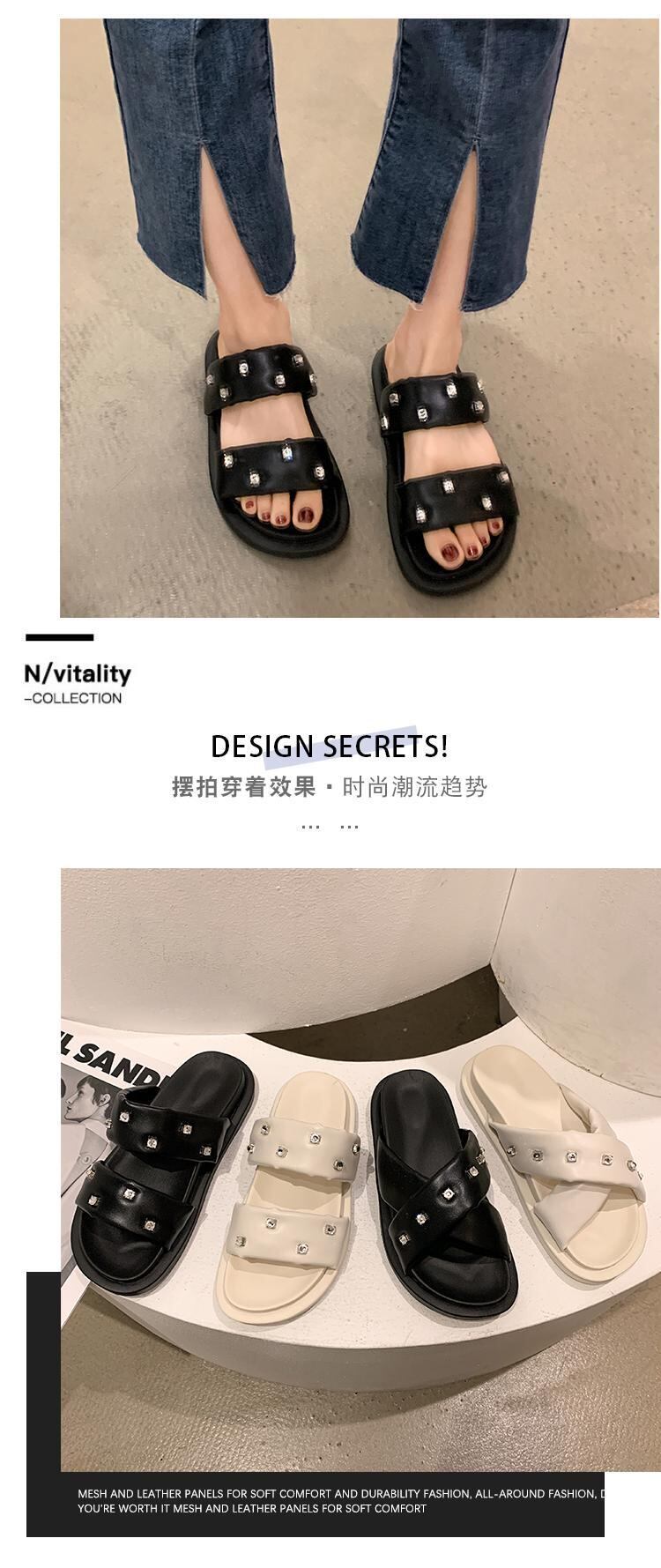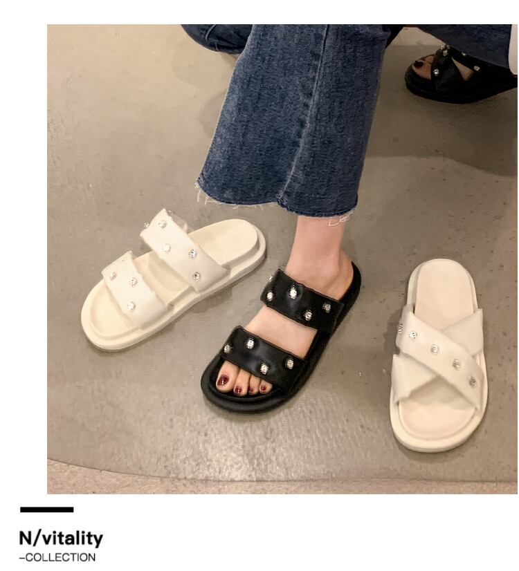 サンダルとスリッパを履いた女性の2022年夏の新しいラインストーンの厚い底の滑り止めのスーパーファッションオールマッチカジュアルビーチサンダル ミュール 靴 シューズ サマー 夏物 jxjxf82576353804
