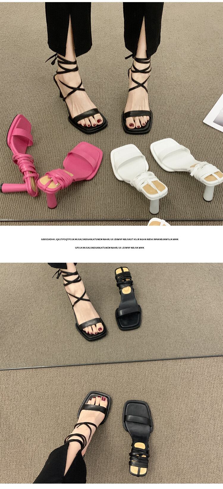 ローマのサンダルレディース2022年夏の新しいスティレットファッションオールマッチ小さな妖精スタイルレトロストラップハイヒール 靴 シューズ サマー 夏物 jxjxf59466807056