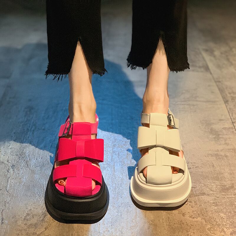 ローマのサンダルレディース2022年夏の新しいファッションオールマッチかわいい弓学生厚い底滑り止めビーチシューズ 靴 リボン 大人ガーリー スウィート キュート カジュアル サマー 夏物 jxjxf58806609098