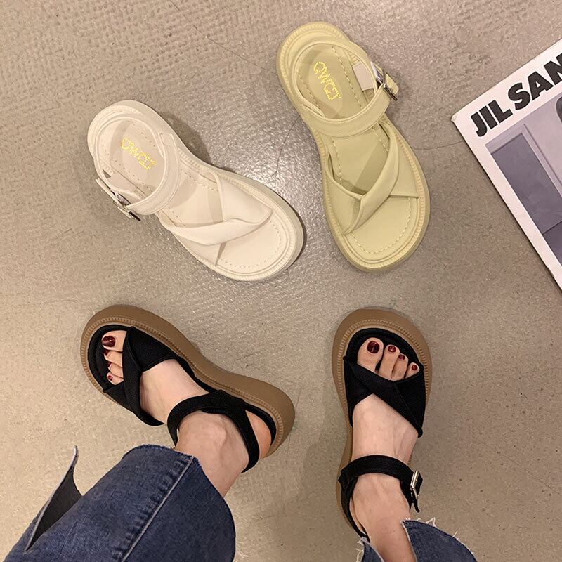 レトロサンダル女性の2022年夏の新しいスポンジケーキ滑り止めネット赤スーパーファッションオールマッチ優しいローマの靴の潮 シューズ レッド サマー 夏物 jxjxf1556766270
