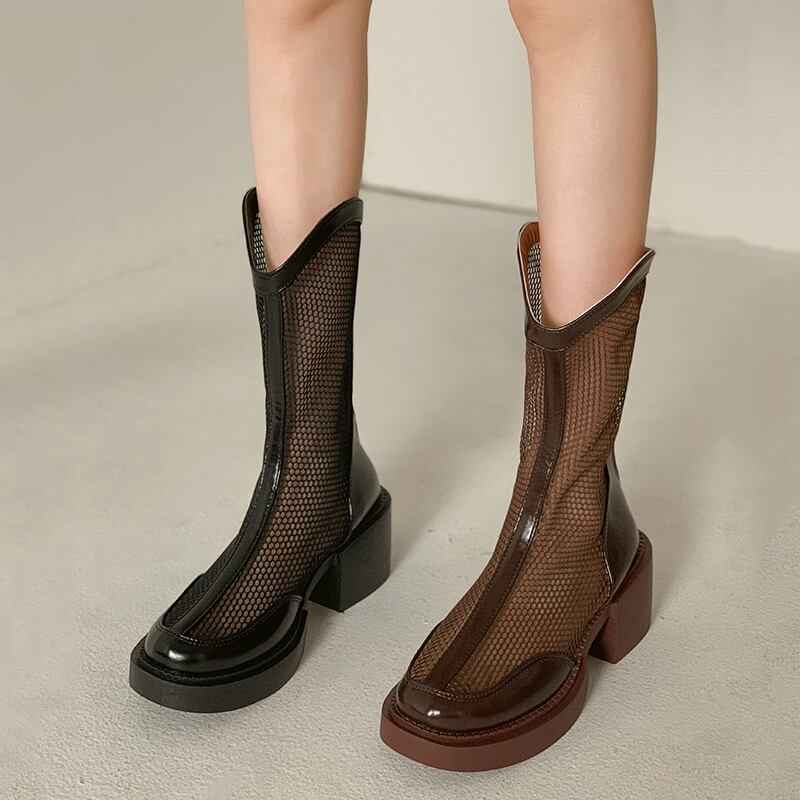 クールなブーツ女性の2022年夏の新しいメッシュ通気性のある厚いヒール滑り止めのファッションオールマッチ小さな英国スタイルのショートブーツ 靴 シューズ サマー 夏物 jxjxf60034188753
