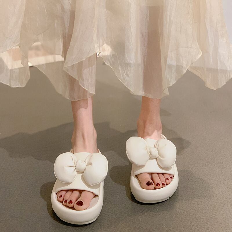 夏のスリッパ女性は2022年の新しいスーパーオールマッチかわいい弓厚い底滑り止め一言サンダルとスリッパを着用します リボン ミュール 靴 シューズ 大人ガーリー スウィート キュート カジュアル サマー 夏物 スリッポン jxjxf31273450314
