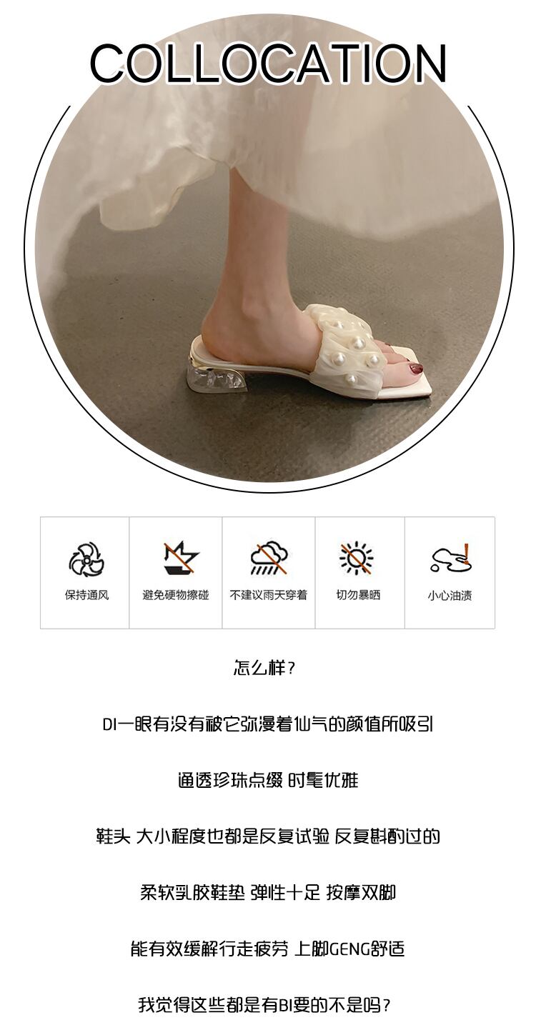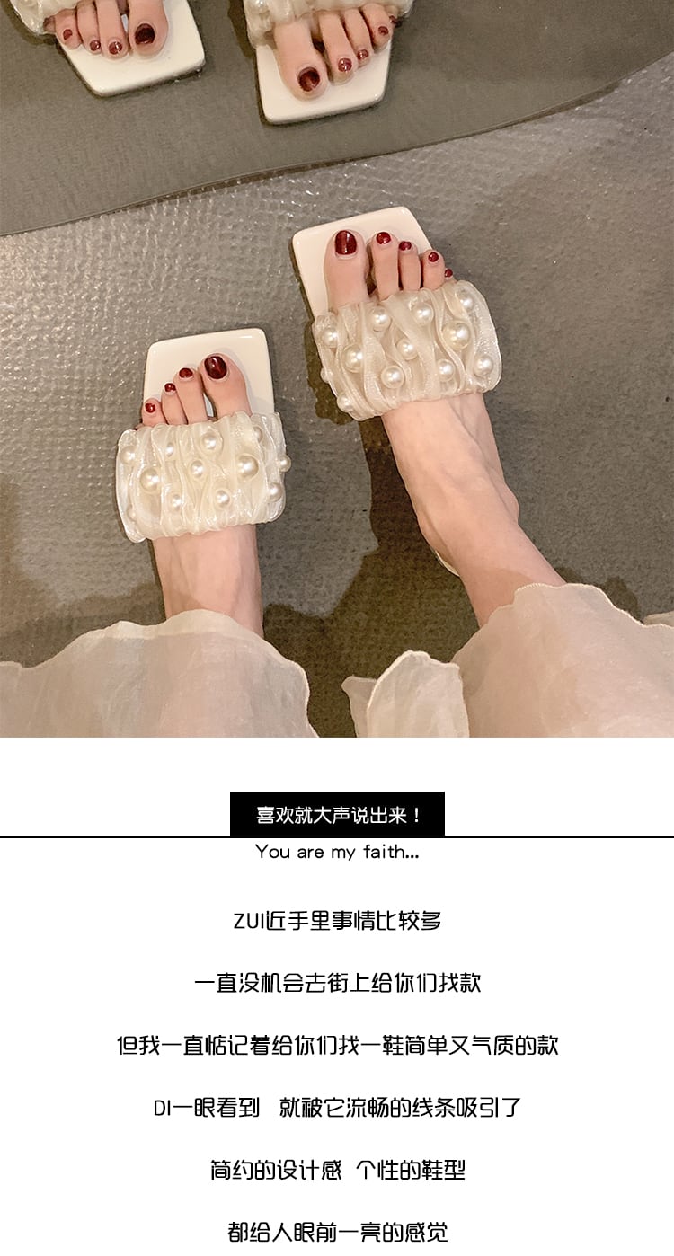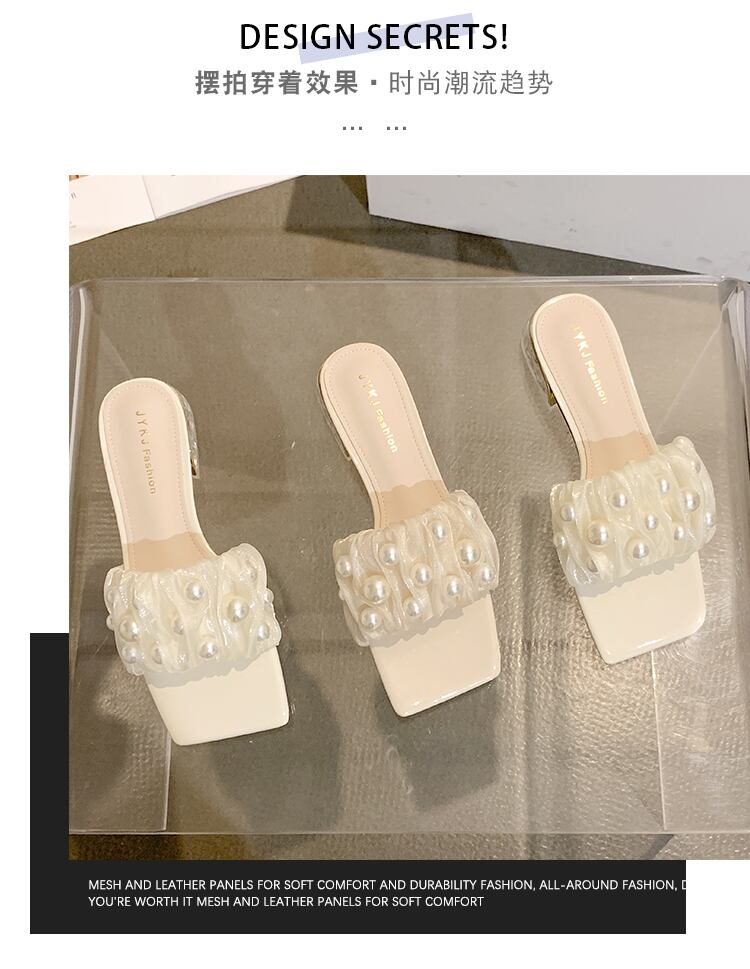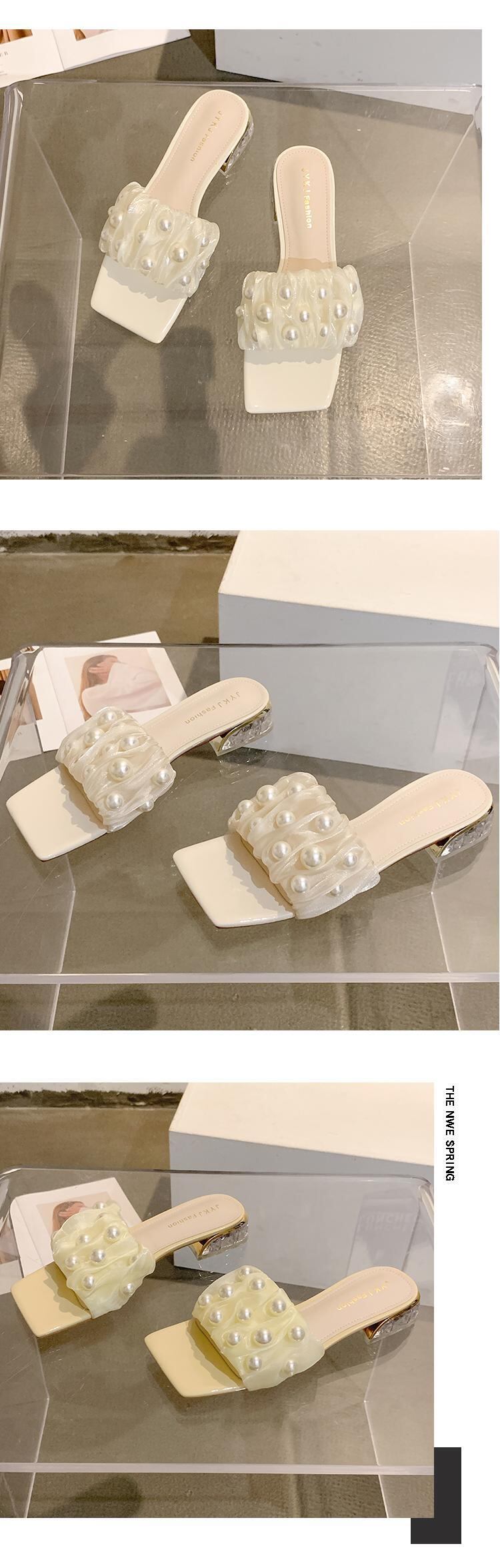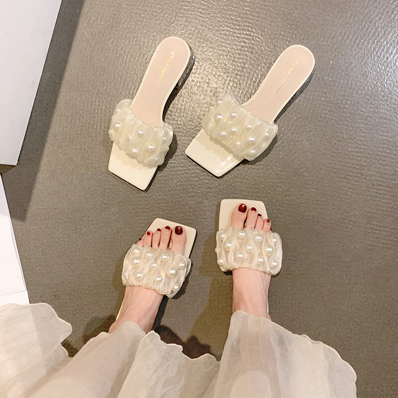 ネットレッドスリッパレディースサマーアウターウェア2022ジェントルパールローヒール滑り止めフェアリーウィンドタイド ミュール 靴 シューズ 夏物 真珠 jxjxf38733494399