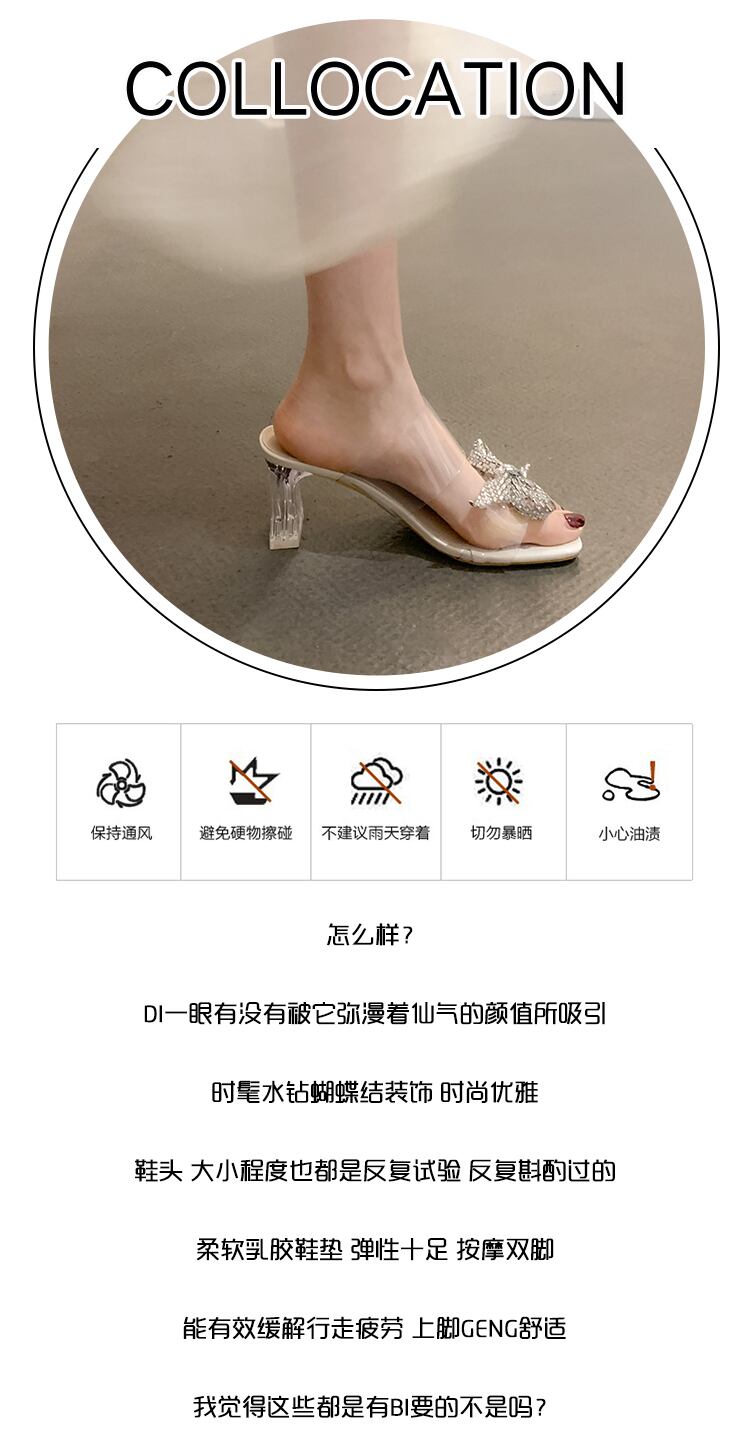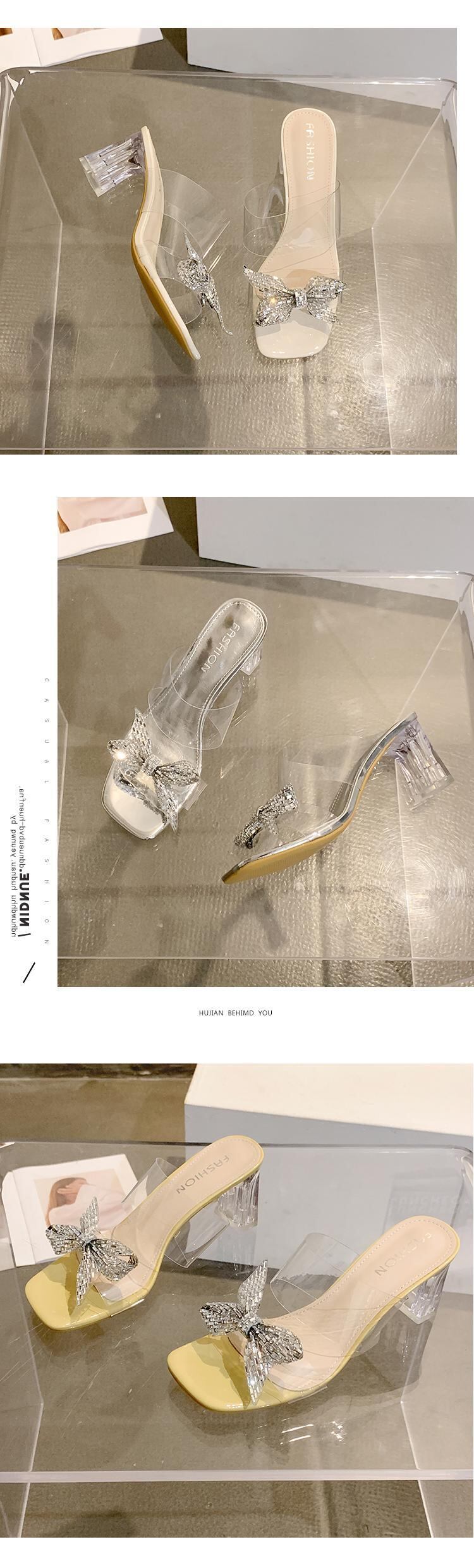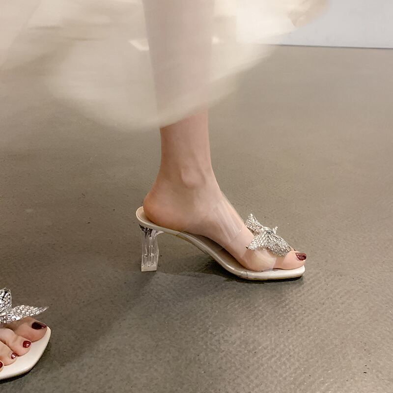 ネットセレブスリッパレディース2022年夏の新作ファッションオールマッチラインストーンボウクリスタルハイヒールサンダルとスリッパ リボン 靴 シューズ ミュール サマー 夏物 jxjxf30057690656
