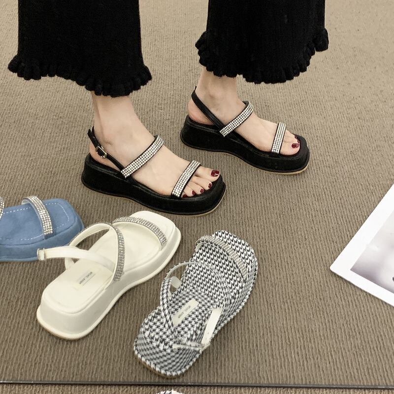 靴の女性の夏のサンダル2022新しいスーパーファッションオールマッチラインストーン小さな厚い底滑り止めビーチシューズ潮 サマー 夏物 jxjxf60981781152