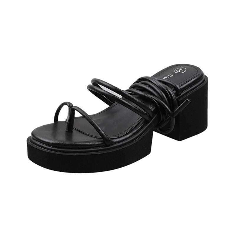 ネットレッドサンダル女性2022年夏の新しい厚いヒール滑り止めファッションクロスストラップ小さな妖精スタイルのハイヒール 靴 シューズ サマー 夏物 jxjxf82607429974