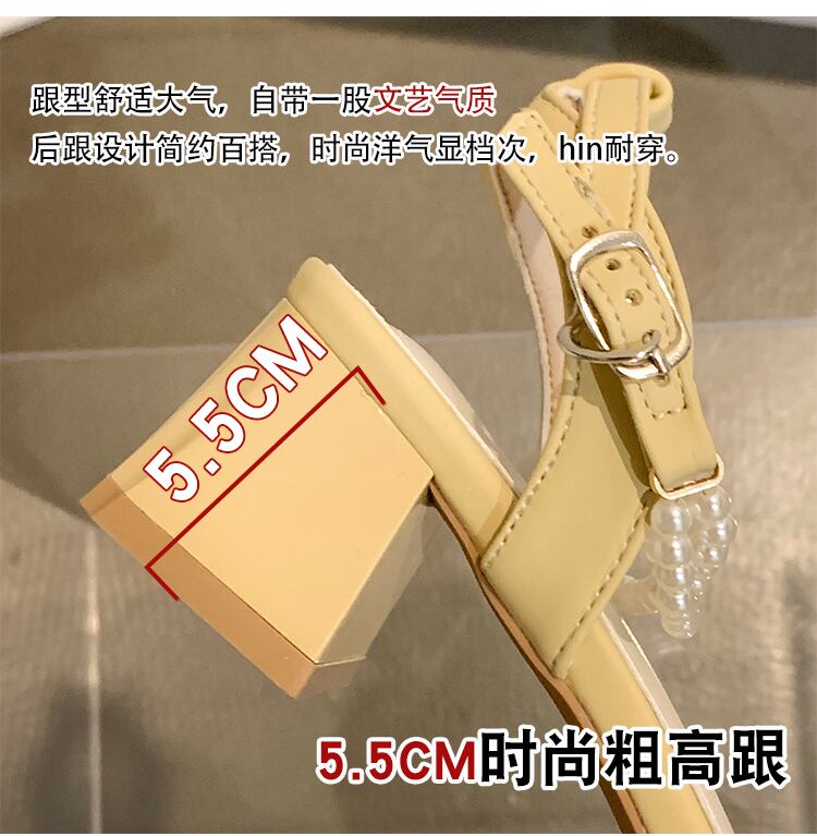 フェアリースタイルのハイヒールの女性の2022年夏の新しい真珠の厚いかかと滑り止めのスーパーファッションオールマッチフレンチサンダル 靴 シューズ サマー 夏物 パール jxjxf44308567572