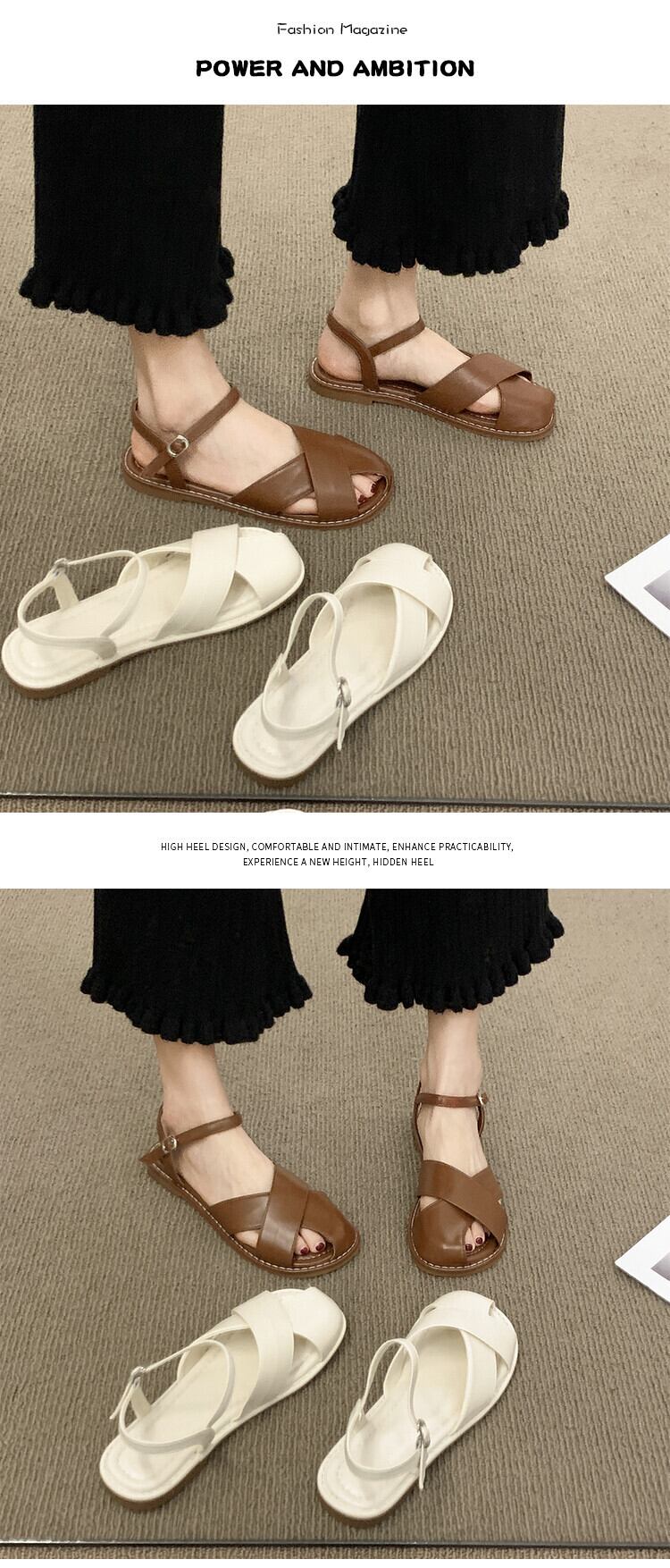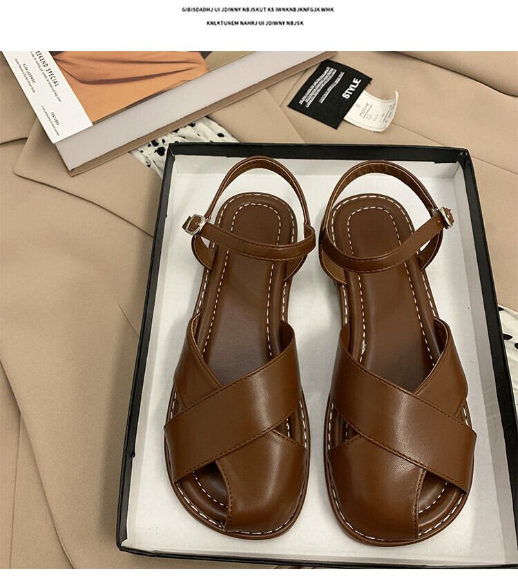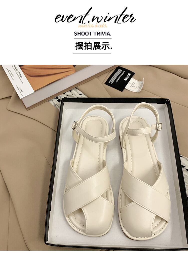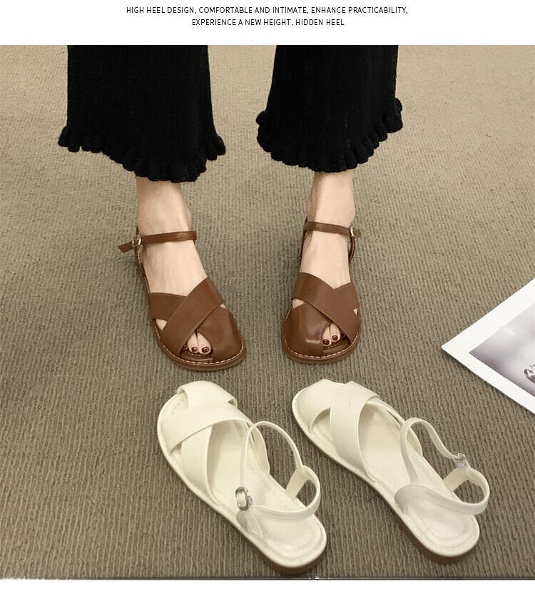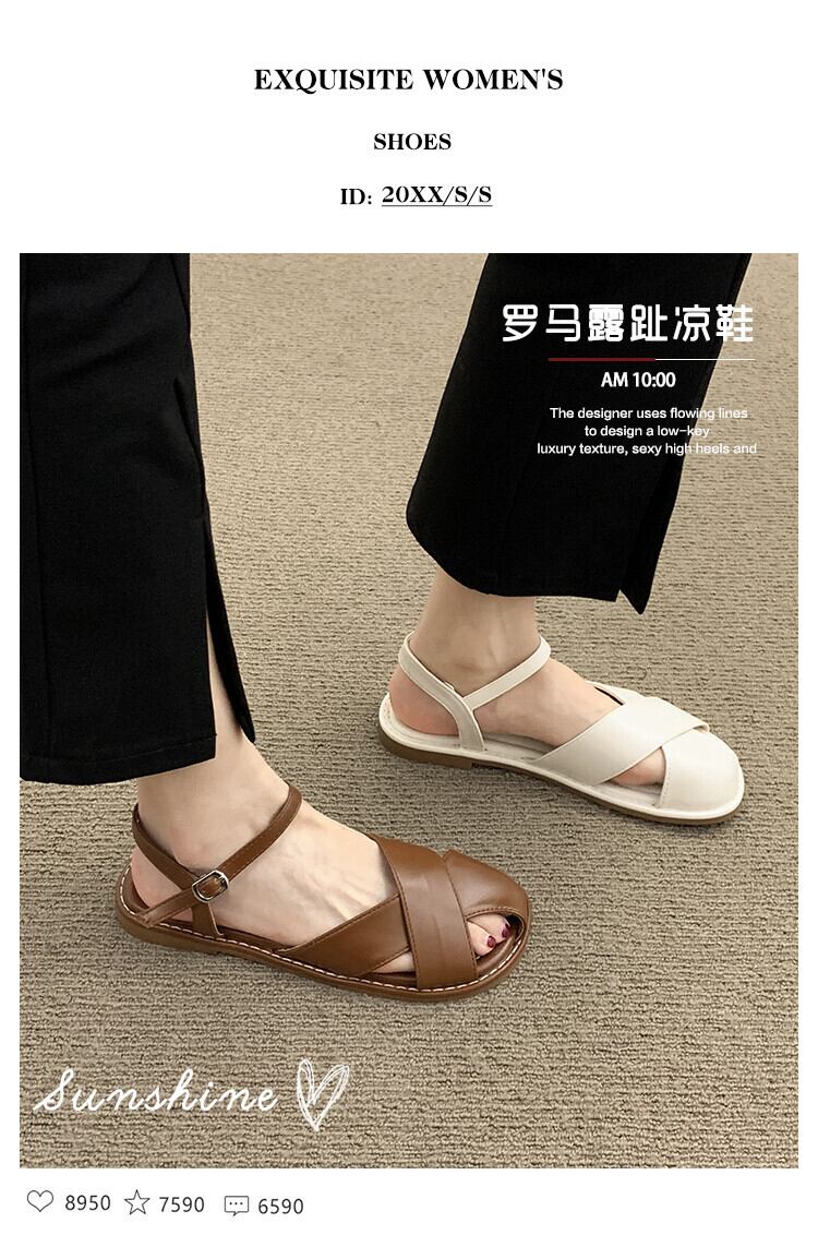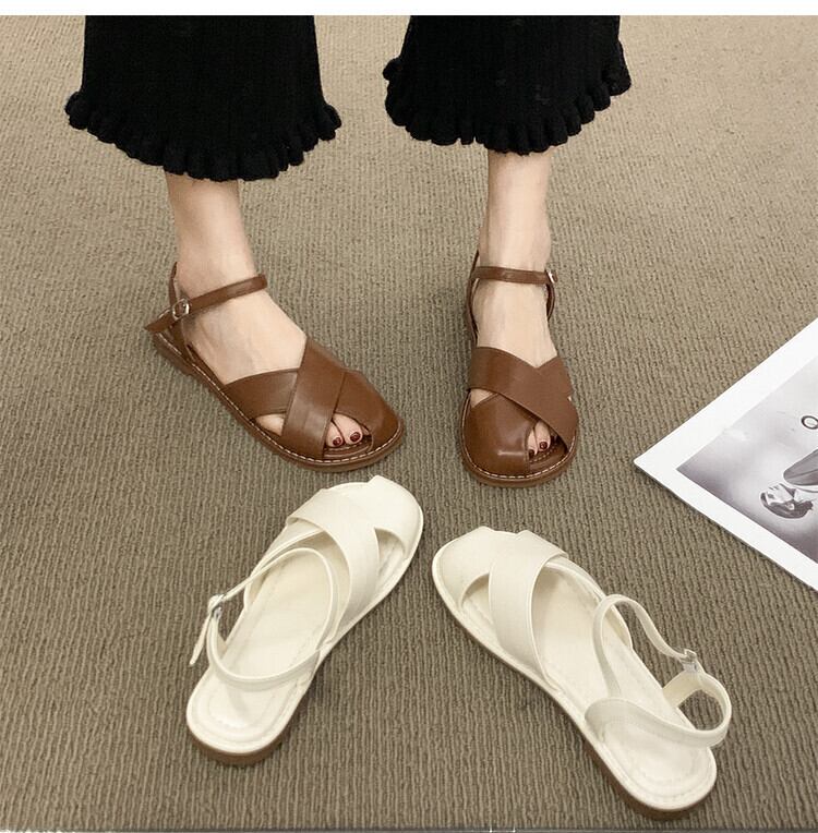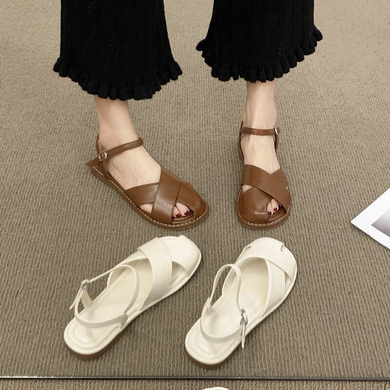 包頭サンダルレディース2022年夏の新しいクロスフラット滑り止めネットレッドスーパーファッションワイルドレトロローマの靴 シューズ サマー 夏物 jxjxf88349081111