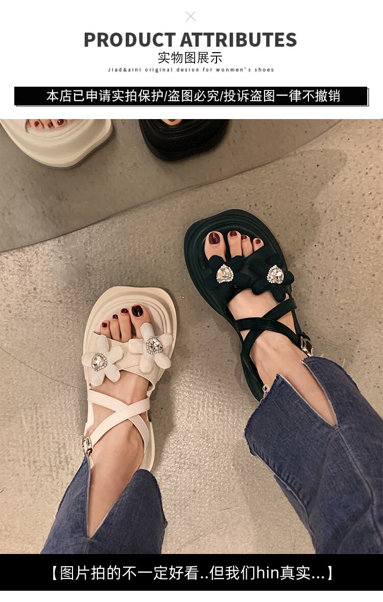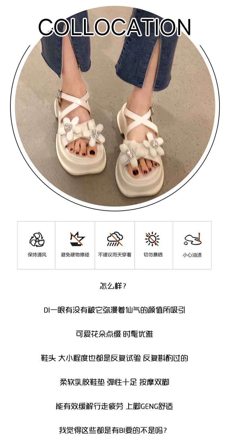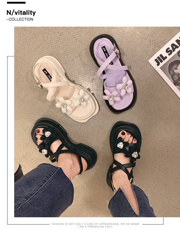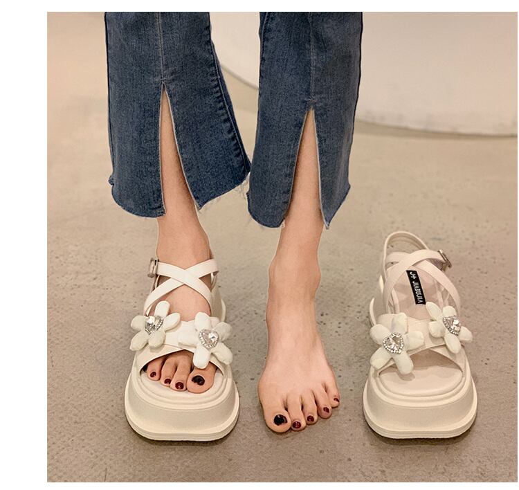 フェアリーウィンドサンダルレディース2022夏の新しいラインストーンの花厚いヒール滑り止めネットレッドスーパーオールマッチローマの靴 シューズ サマー 夏物 フラワーデザイン jxjxf50569960126